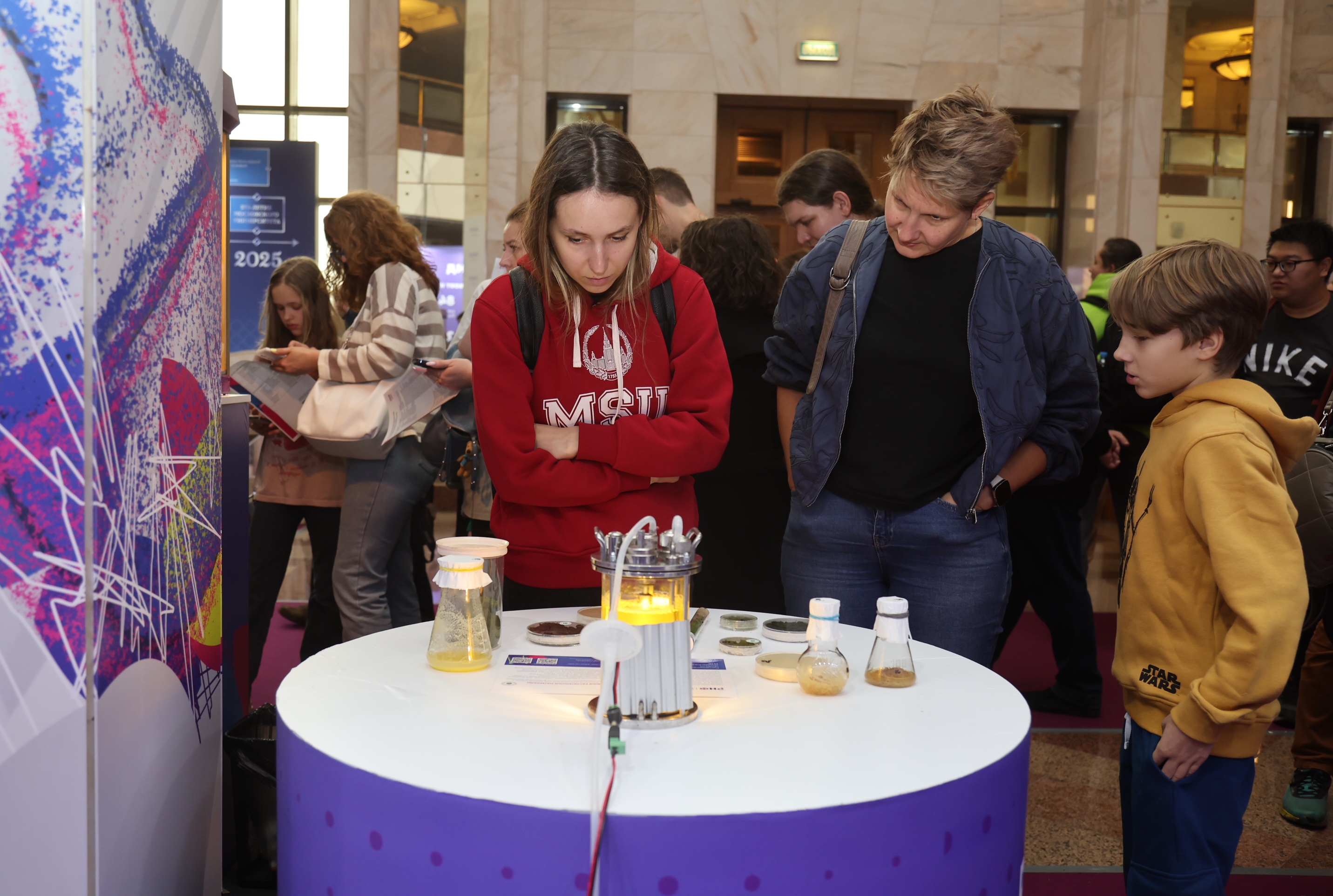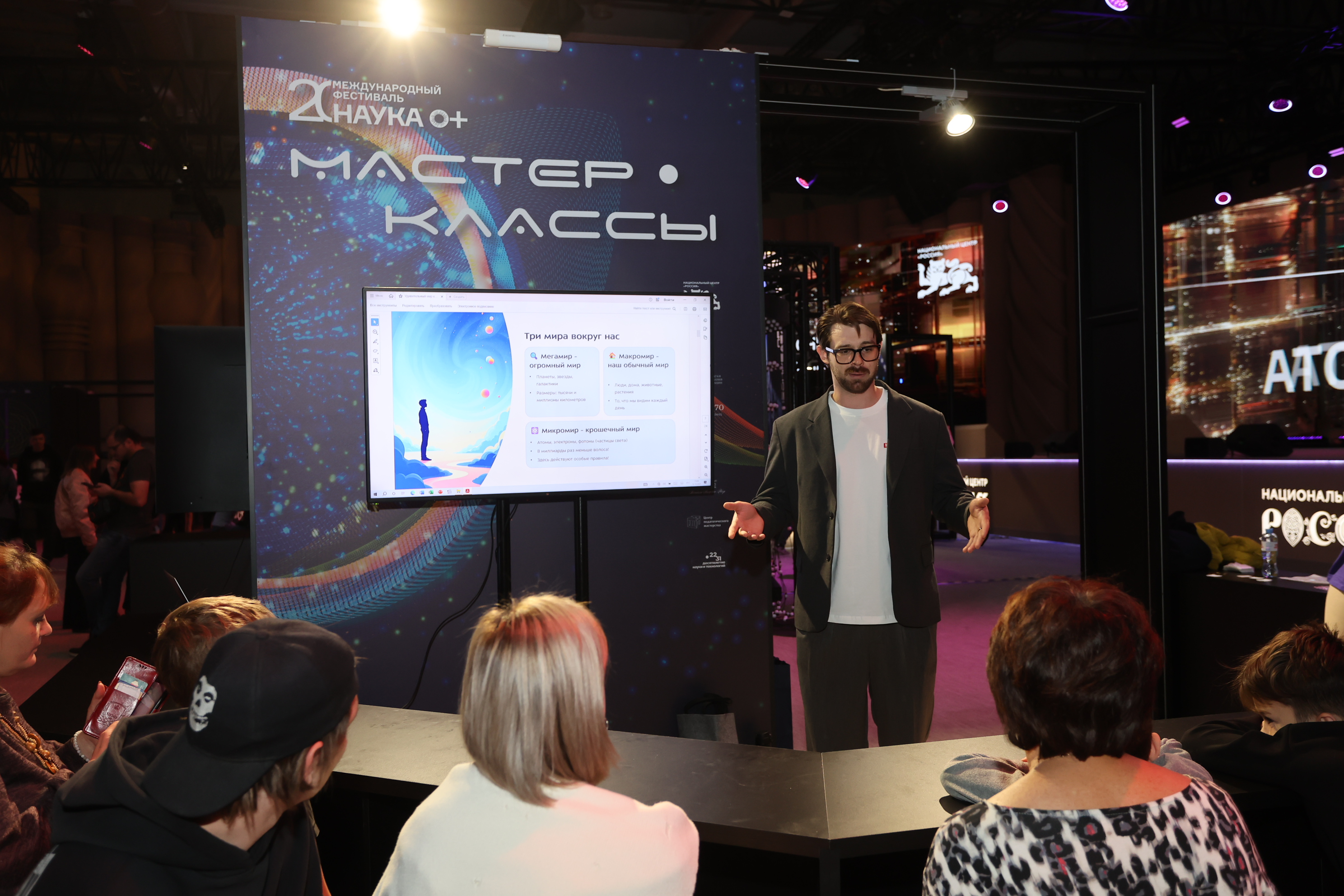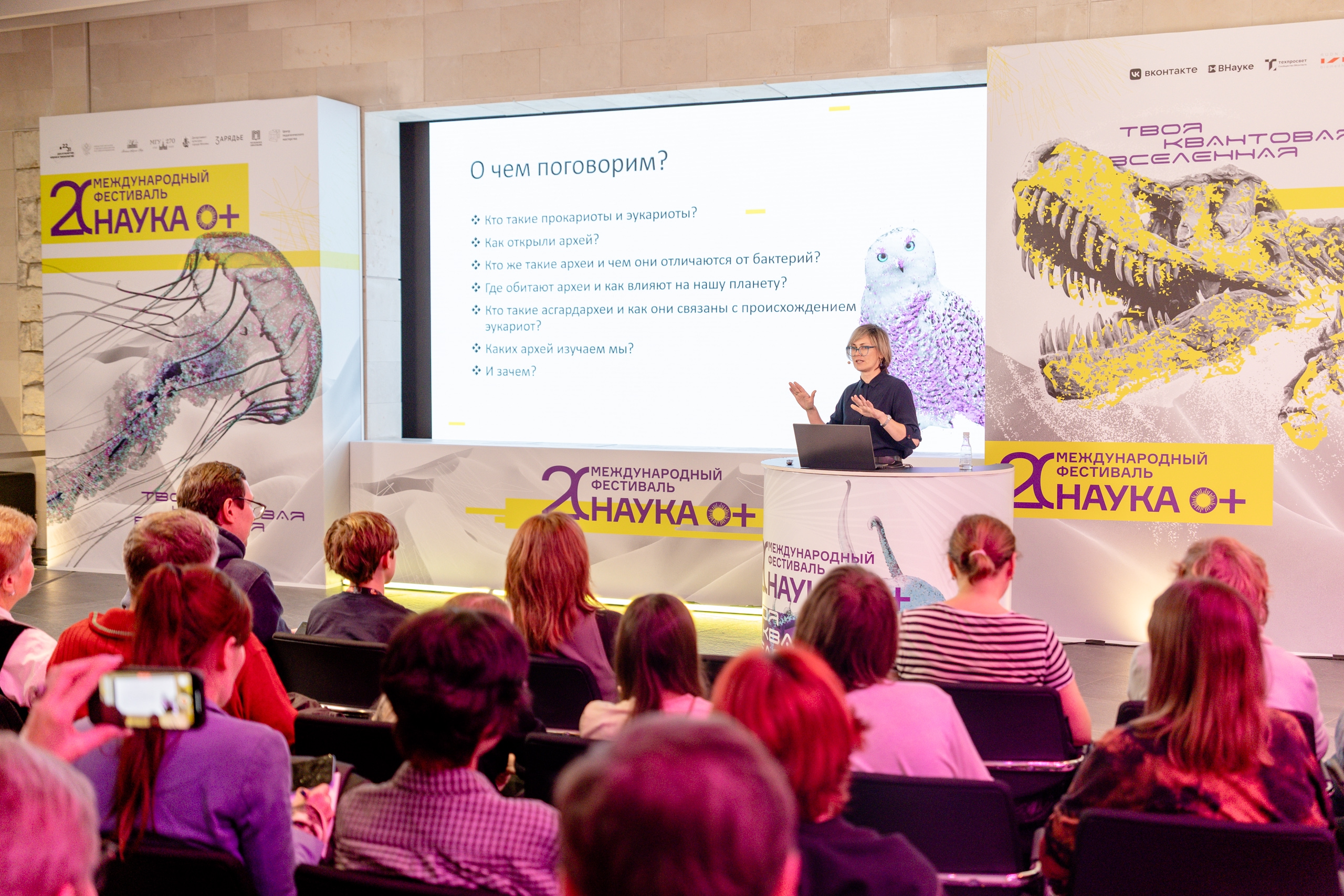 В рамках лектория на площадке «Зарядье» Полина Рудаковская, кандидат химических наук, научный сотрудник Центра фотоники и фотонных технологий Сколтеха, рассказала, как наночастицы — крошечные структуры в миллиард раз меньше метра — становятся союзниками врачей и ученых. Дмитрий Билан, доктор биологических наук, ведущий научный сотрудник ИБХ РАН, поделился знанием о том, как обычный белок из медузы или бактерии может стать ключом к изучению заболеваний человека и даже подарить клеткам новые свойства. Благодаря Татьяне Кочетковой, кандидату биологических наук, старшему научному сотруднику лаборатории Метаболизма экстремофильных прокариот ФИЦ Биотехнологии РАН, участники познакомились с удивительным миром архей — древнейших микроорганизмов, без которых не существовало бы сложной жизни на Земле. Кроме того, среди лекторов и выступающих — грантополучатели РНФ Ирина Репина, Егор Задеба, Дмитрий Сычев, Сеидали Сеидов, Олег Лычковский, Елена Мухина. На площадке Национального центра «Россия» увлекательный мастер-класс провел Илья Орехов. Дети в игровой форме увидели, как частицы могут быть одновременно в двух состояниях, «чувствовать» друг друга на любом расстоянии, и как ученые используют эти свойства для передачи квантовой информации.