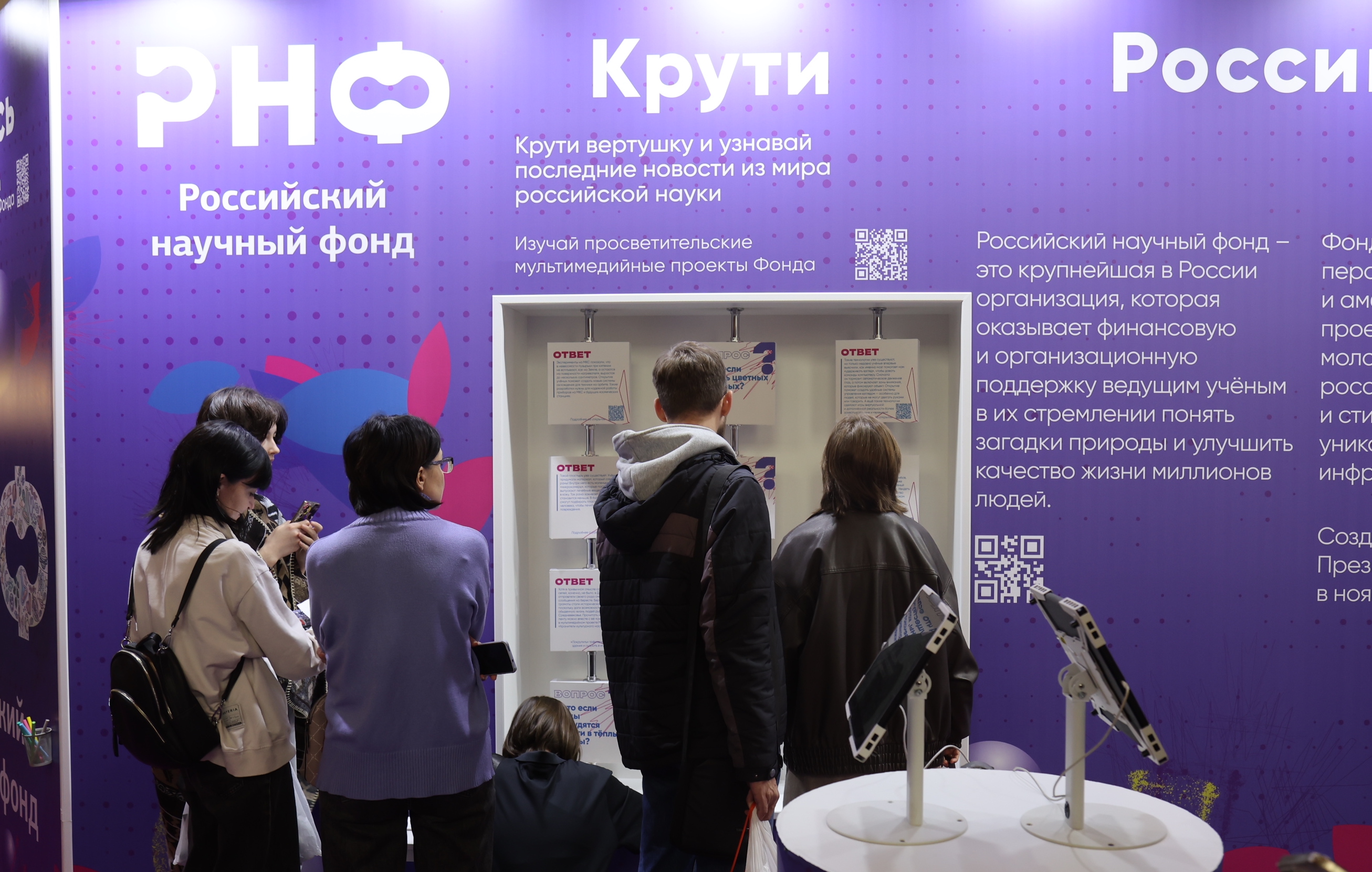 Посетители интерактивной экспозиции РНФ почувствовали себя настоящими исследователями, познакомились с открытиями ученых и узнали множество занимательных научных фактов на лекциях и мастер-классах, прошли научные квесты и получили памятные подарки от Фонда. Грантополучатели РНФ выступали на площадках в Фундаментальной библиотеке МГУ имени М.В. Ломоносова, парке «Зарядье» и Национальном центре «Россия».