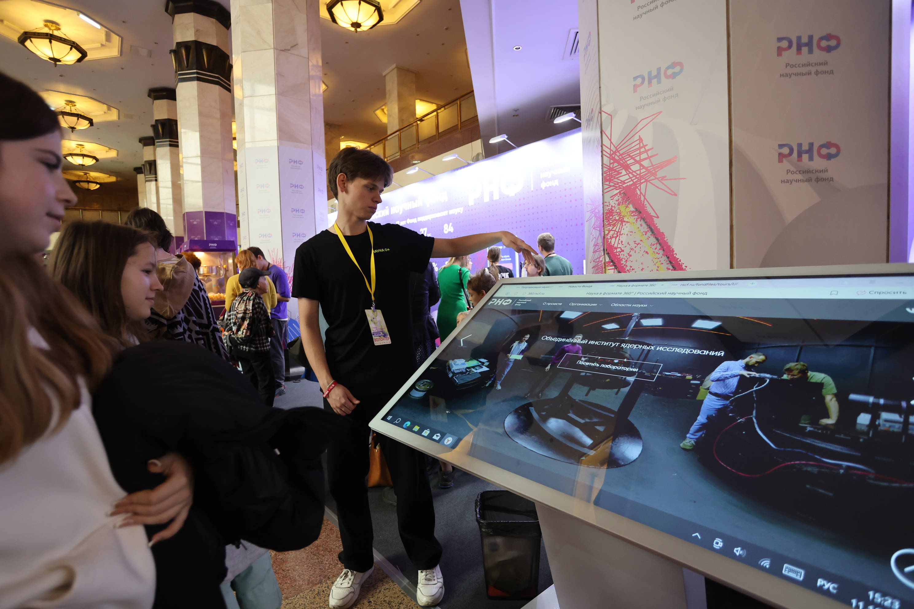 С помощью специальных тач-экранов гости фестиваля смогли прогуляться по более чем 100 лабораториям 15 университетов и институтов России. Уникальная коллекция виртуальных туров «Наука в формате 360°» позволила в деталях рассмотреть места, где каждый день происходят большие и маленькие открытия, отодвигающие границу нашего понимания окружающего мира. РНФ ежегодно пополняет коллекцию туров, давая возможность каждому желающему заглянуть за двери ведущих лабораторий страны.
