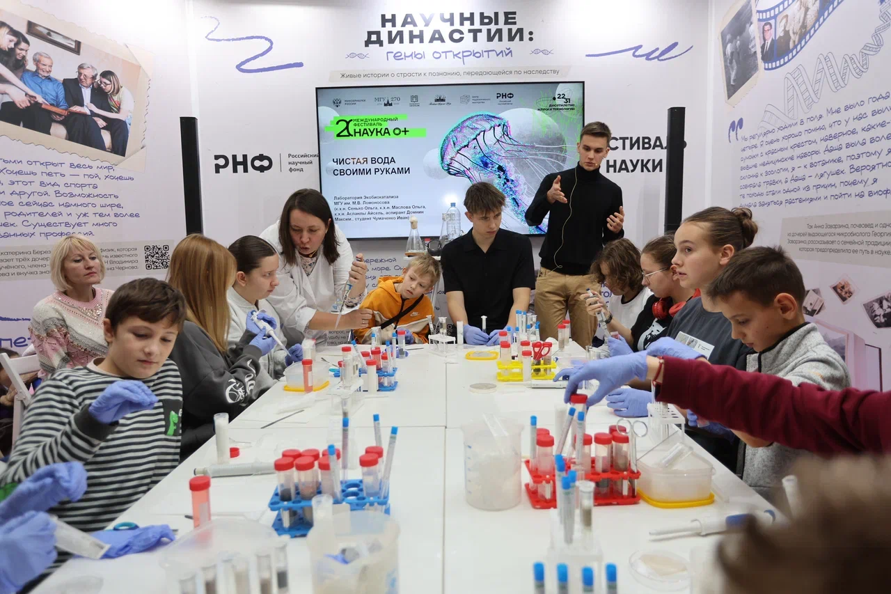 На мастер-классах участников ждали удивительные эксперименты и необычные изобретения. Дмитрий Карпов, кандидат биологических наук, ведущий научный сотрудник лаборатории регуляции внутриклеточного протеолиза ИМБ РАН, научил ребят работать с микрообъемами и «капризными» веществами. Команда лаборатории Экобиокатализа Химического факультета МГУ имени М. В. Ломоносова, работающая при поддержке РНФ, провела мастер-класс, посвященный простой, но очень важной жидкости — воде. Особый интерес детей вызвал собственный фильтр из подручных материалов, который они собрали сами и проверили его эффективность на практике. Александра Болдырева, кандидат химических наук, научный сотрудник Центра энергетических технологий Сколтеха, рассказала, как энергия звезд превращается в электричество, и вместе с участниками провела эксперимент с солнечной батареей.