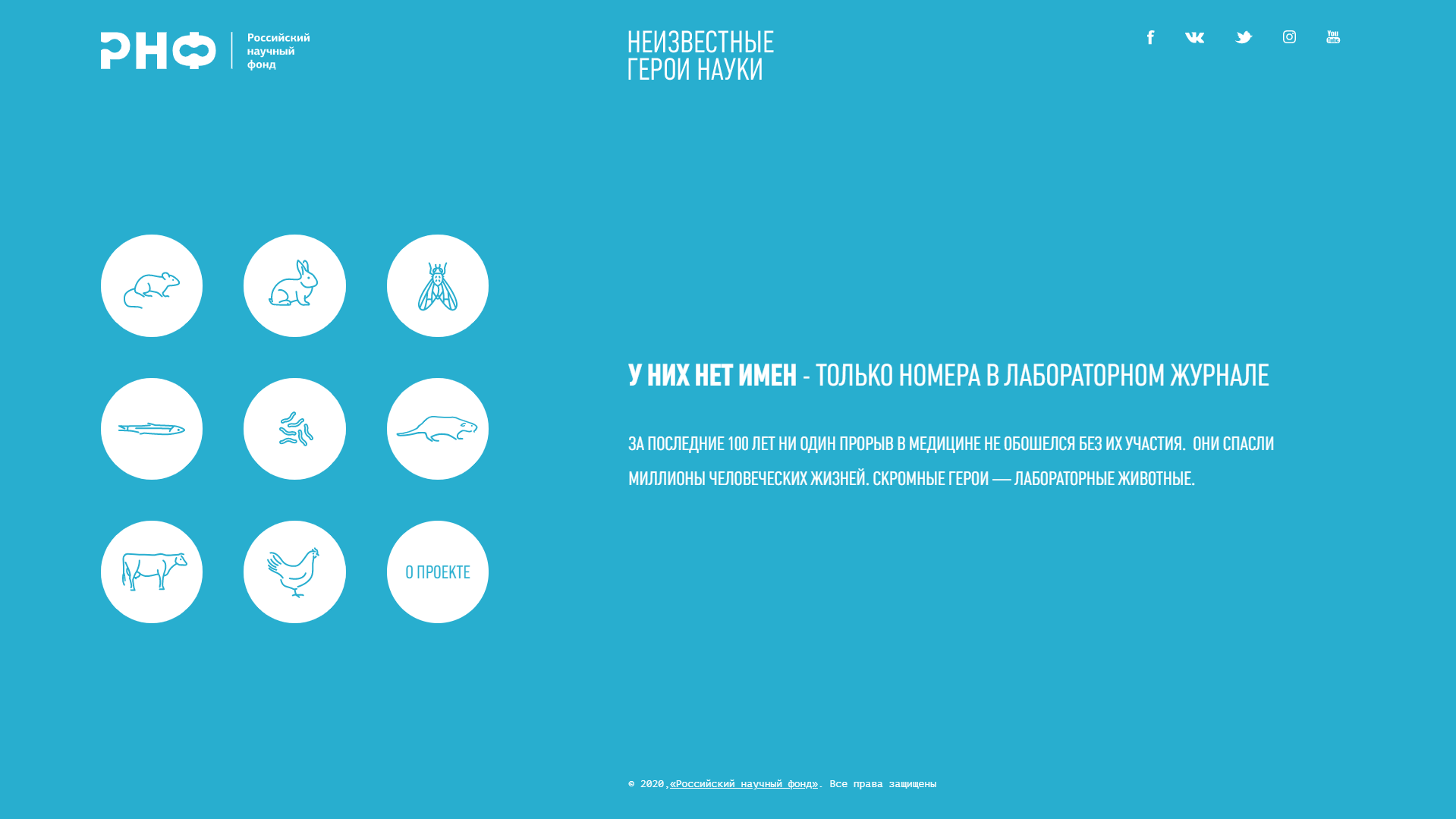 «С каждым годом исследования с использованием лабораторных животных становятся все гуманнее, отменяются многие программы испытаний, но в большинстве случаев полностью от помощи братьев наших меньших мы отказаться не можем. Проект «Неизвестные герои науки» – своего рода наша благодарность маленьким героям. Рассказывая о них, мы поможем людям узнать, какой огромный вклад животные вносят в науку и нашу жизнь», – рассказал заместитель генерального директора РНФ Андрей Блинов.
