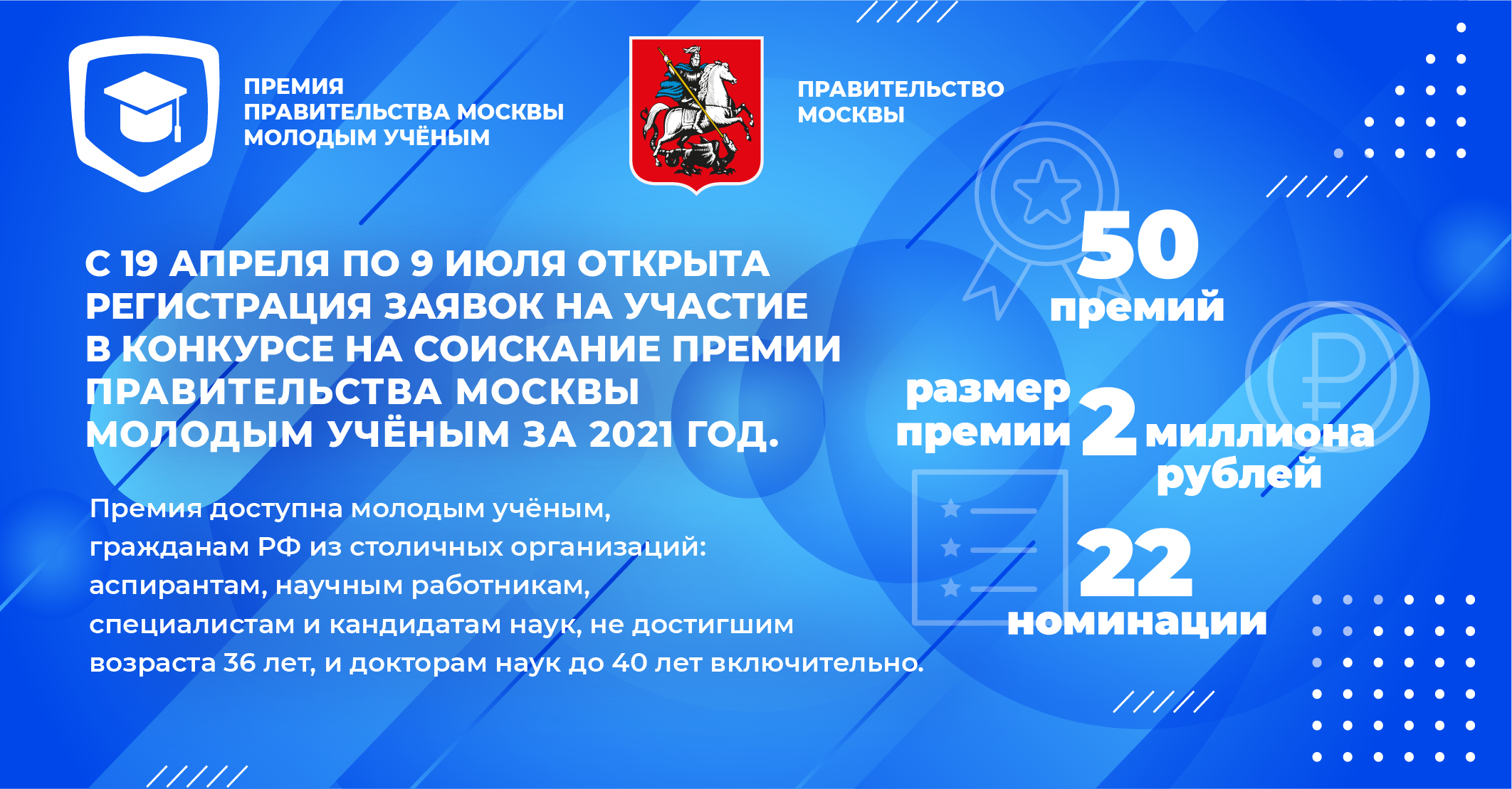 Премия доступна молодым ученым из столичных организаций, гражданам РФ: аспирантам, научным работникам, специалистам и кандидатам наук, не достигшим возраста 36 лет, и докторам наук до 40 лет включительно. Заявку можно подать индивидуально или в составе группы до 3 человек. В случае присуждения премии научному коллективу премия делится поровну между участниками этого коллектива.
