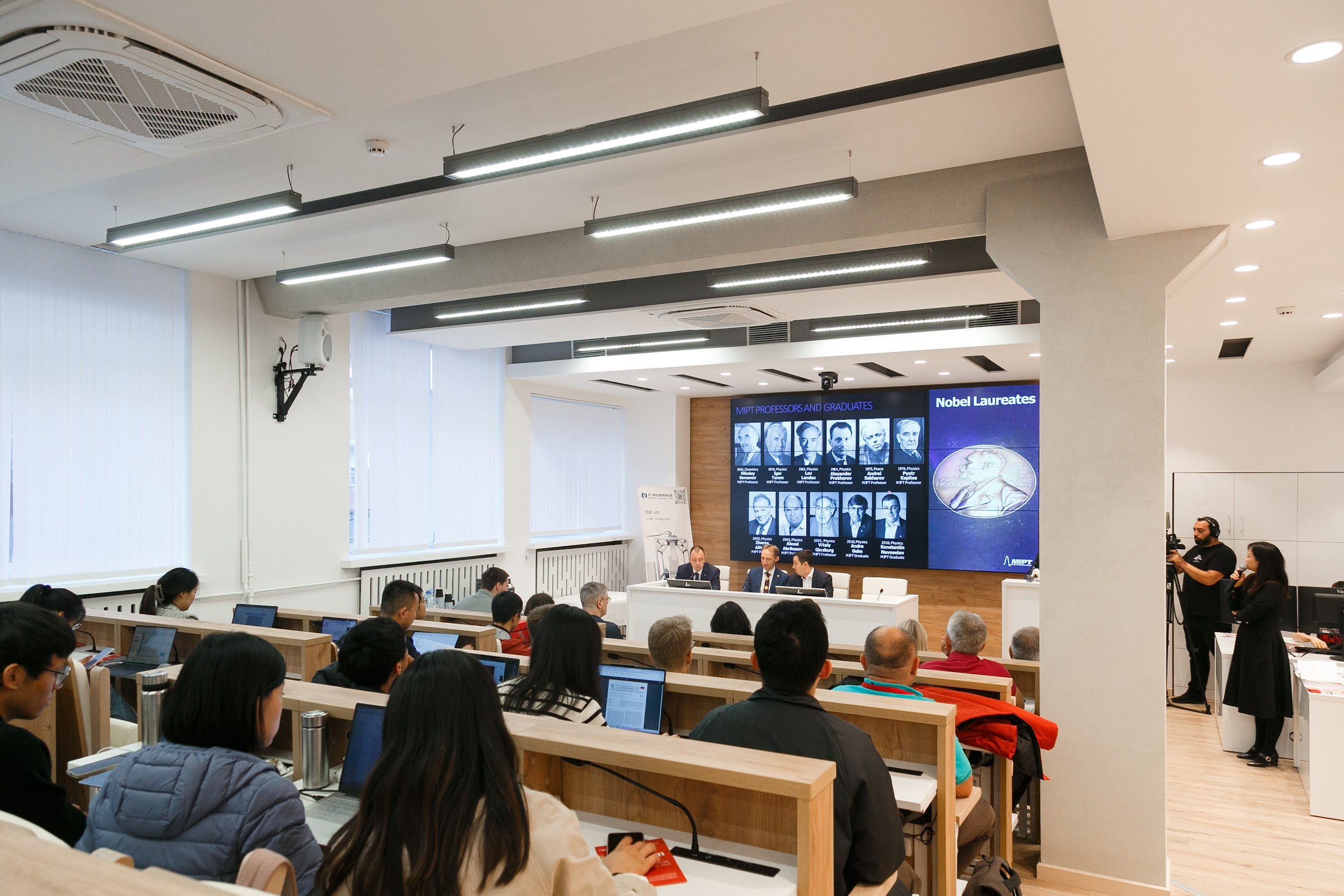 Насыщенную программу дня завершили лекции сотрудников МФТИ, ведущих исследования при поддержке Фонда, а также обзорная экскурсия по лабораториям грантополучателей.