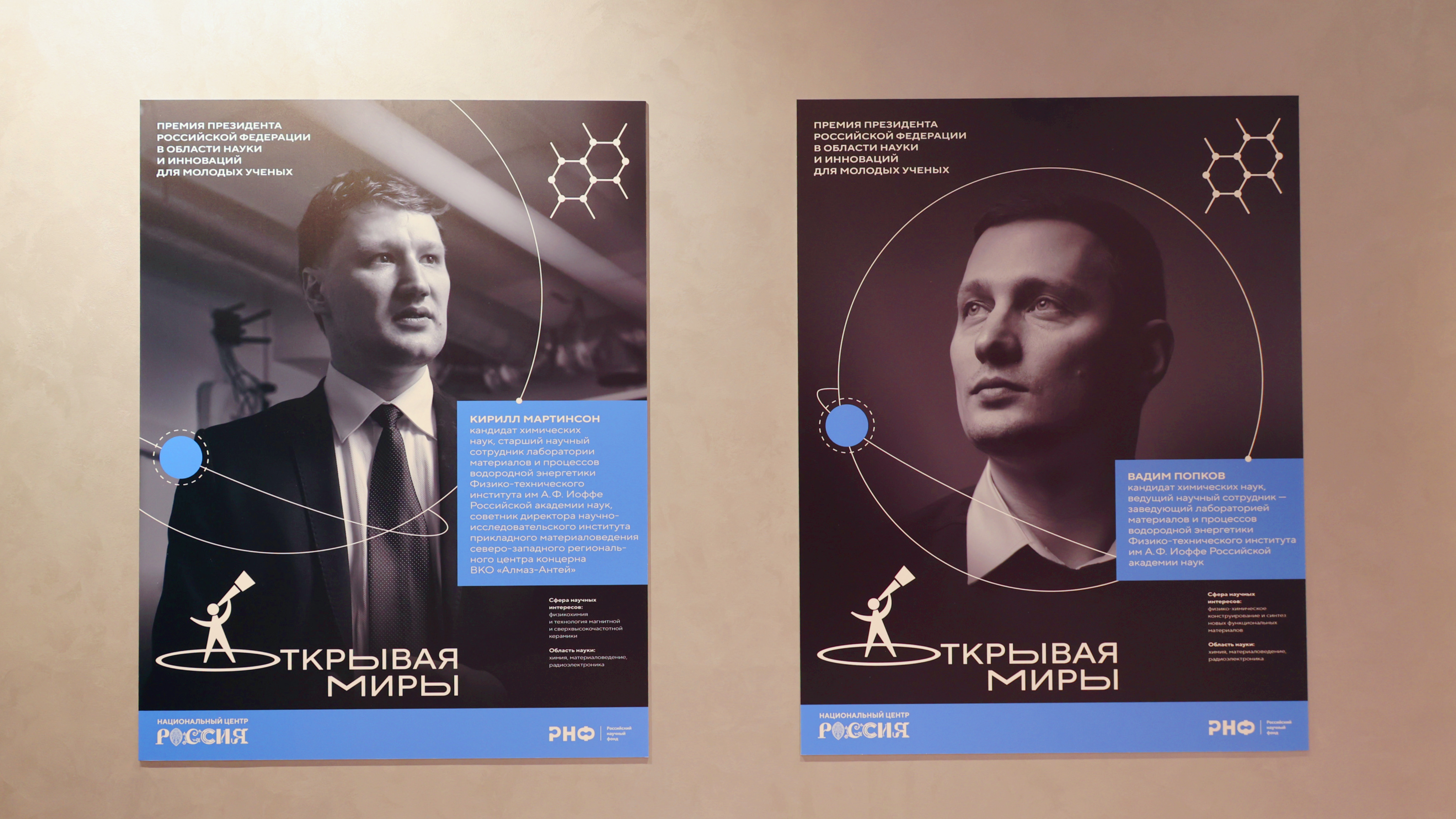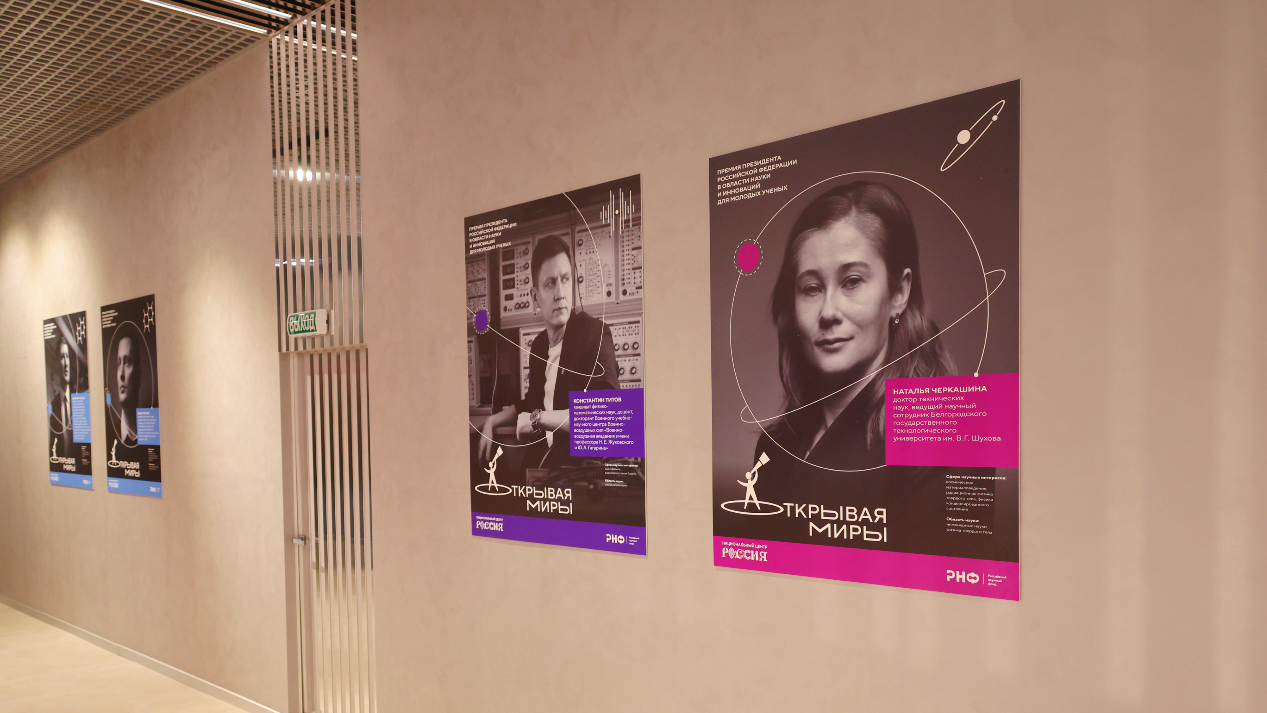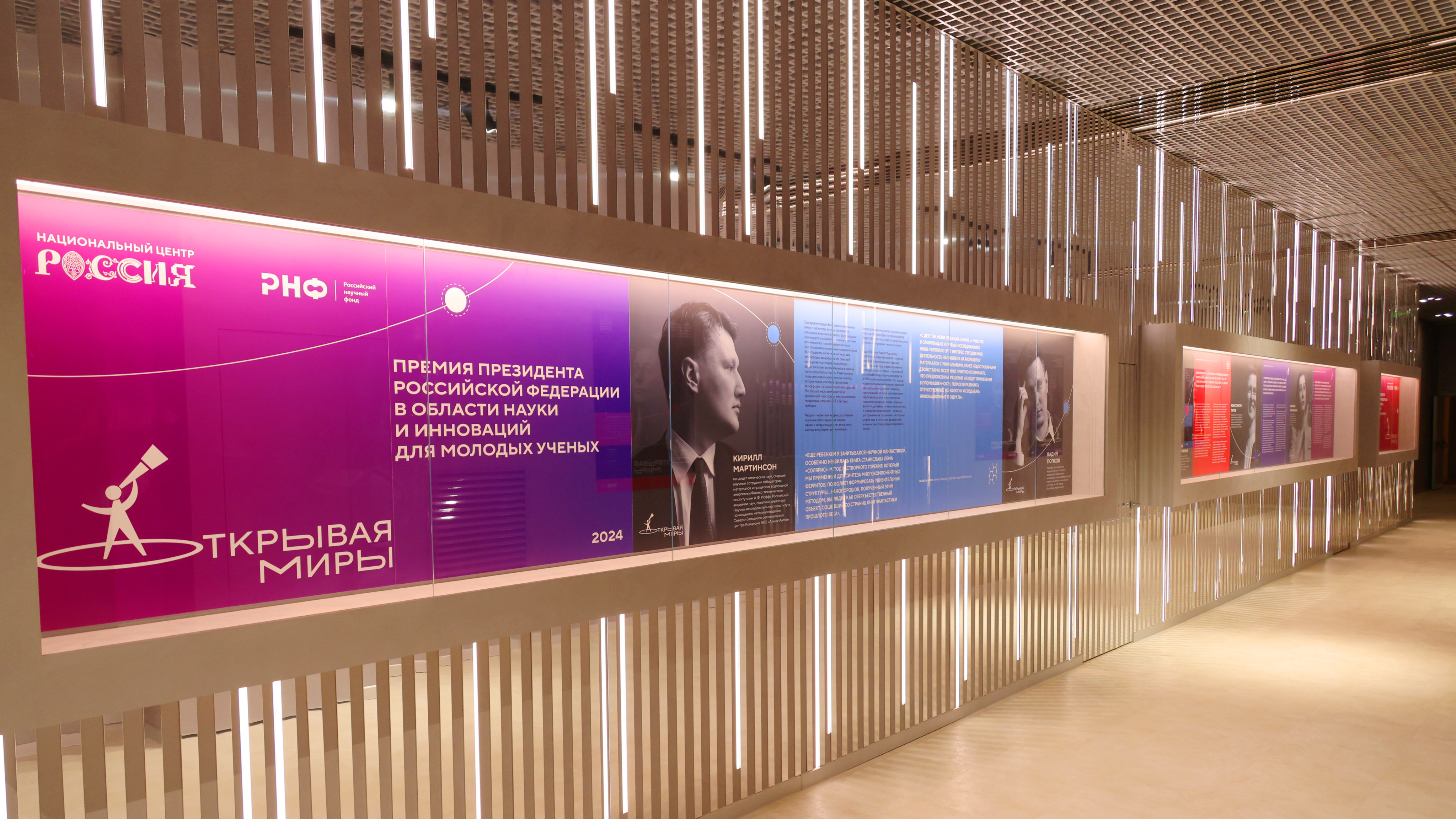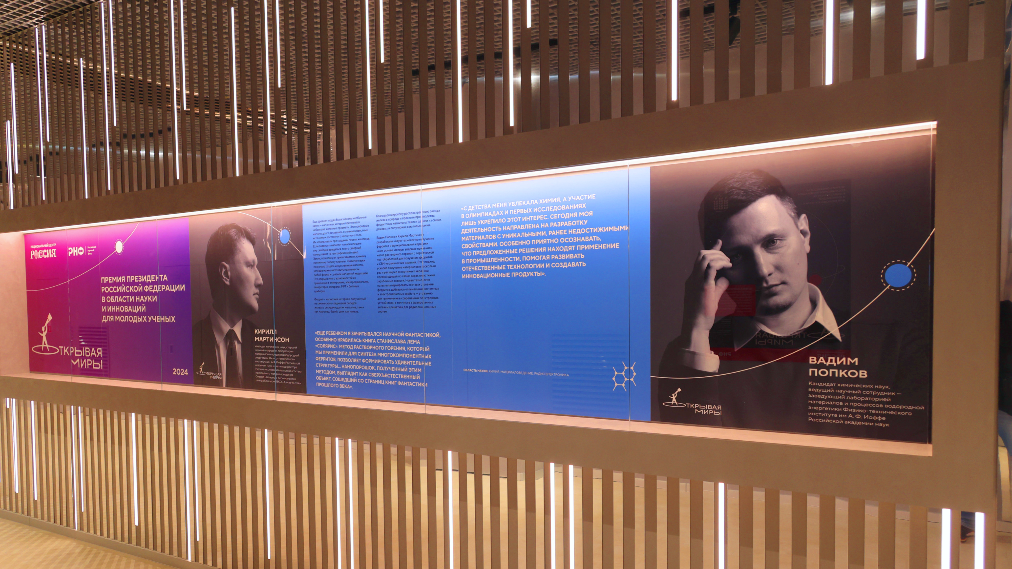 В рамках проекта «Открывая миры» портреты и видеоролики с лауреатами были интегрированы в экспозицию центра. Изображения лауреатов появились на экранах и медиафасаде здания, а описания исследований – на Аллее славы Национального центра.