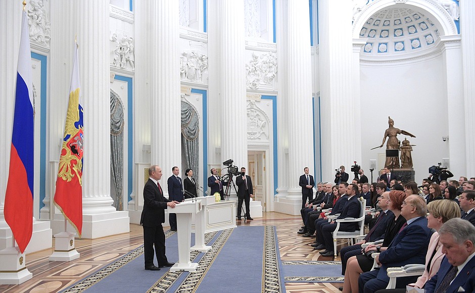 6. Рекомендуемый объем представления - до 7 страниц, для коллективов - до 15 страниц. К представлению прилагаются опубликованные научные работы, иные документы, подтверждающие авторство конструкторских, технических разработок, технологических процессов и других инновационных достижений по теме исследований или разработок, за создание которых их автор (коллектив) выдвигается на соискание премии Президента Российской Федерации.
