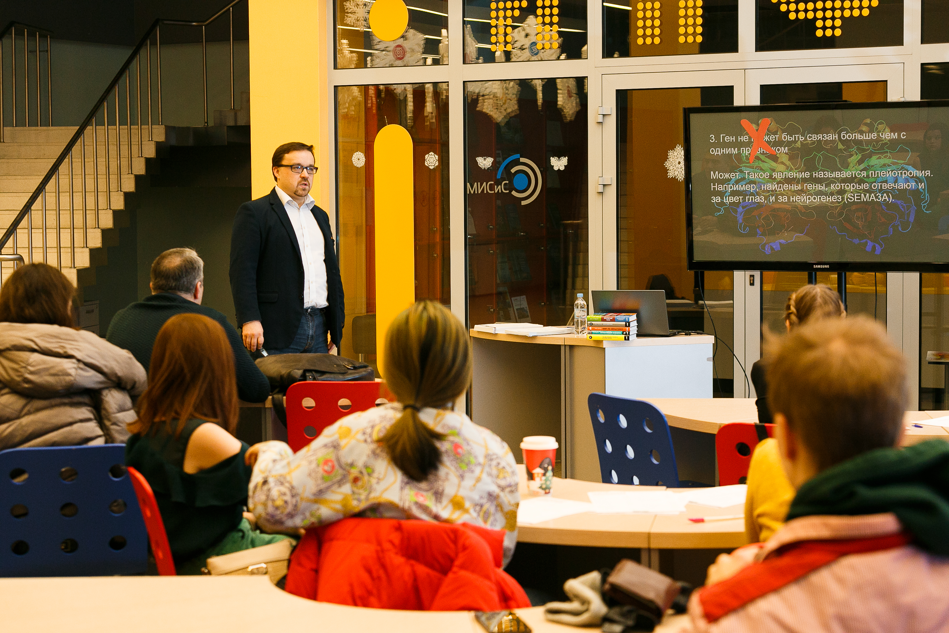 Участники писали тест по медицине с Анастасией Ефименко, кандидатом медицинских наук, заведующей лабораторией Медицинского научно-образовательного центра МГУ им. М.В. Ломоносова, лауреатом Премии Правительства Москвы молодым ученым и программы L’Oreal — UNESCO «Для женщин в науке», грантополучателем РНФ, по генетике – с Петром Каменским, доктором биологических наук, профессором, ведущим научным сотрудником МГУ им. М.В. Ломоносова, научным координатором депозитария живых систем «Ноев ковчег», грантополучателем РНФ.