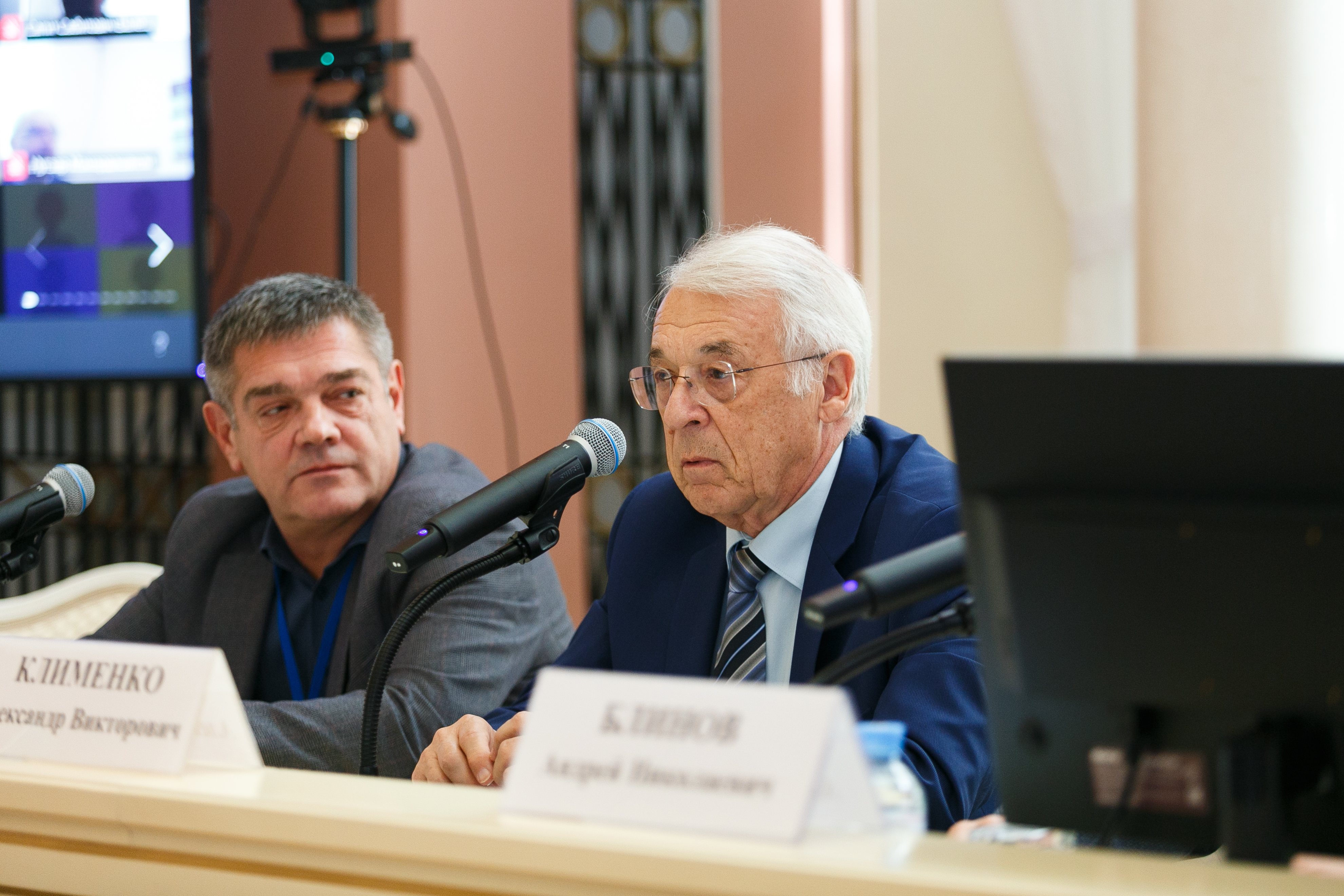 Председатель научно-технологического совета Александр Клименко и заместитель председателя научно-технологического совета Сергей Гаврилов подвели итоги проделанной работы по организации конкурсов по прикладной тематике и ответили на вопросы экспертов.