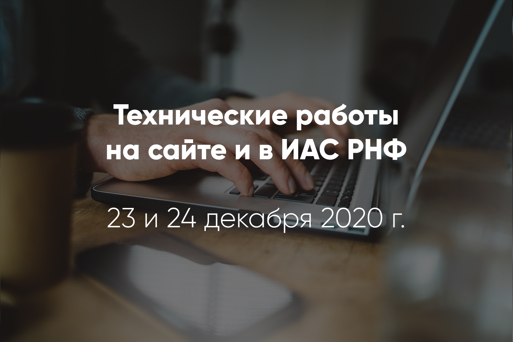 В связи с проведением технических работ с 0:00 (мск) 23 декабря 2020 года по 24:00 (мск) 24 декабря 2020 года будет ограничен доступ к официальному сайту и информационно-аналитической системе РНФ.