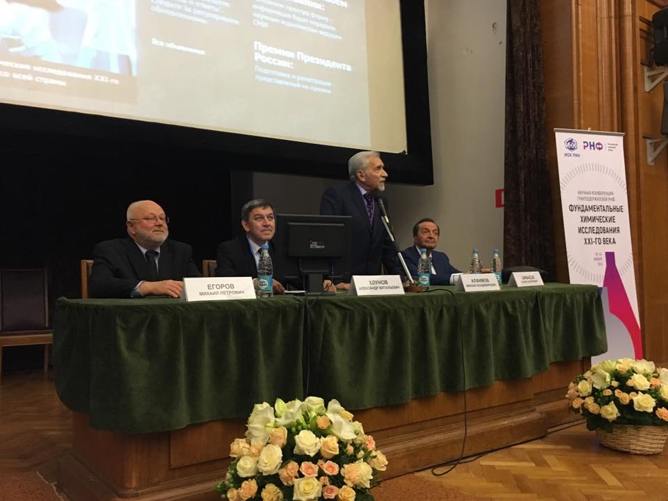 На открытии конференции выступил генеральный директор РНФ Александр Хлунов. Он рассказал о поддержке научных исследований в области химии и науки о материалах со стороны РНФ. Он отметил, что из 2400 проектов, получивших гранты, 335 относятся к этой области науки, что подтверждает значимость этой отрасли для фонда.