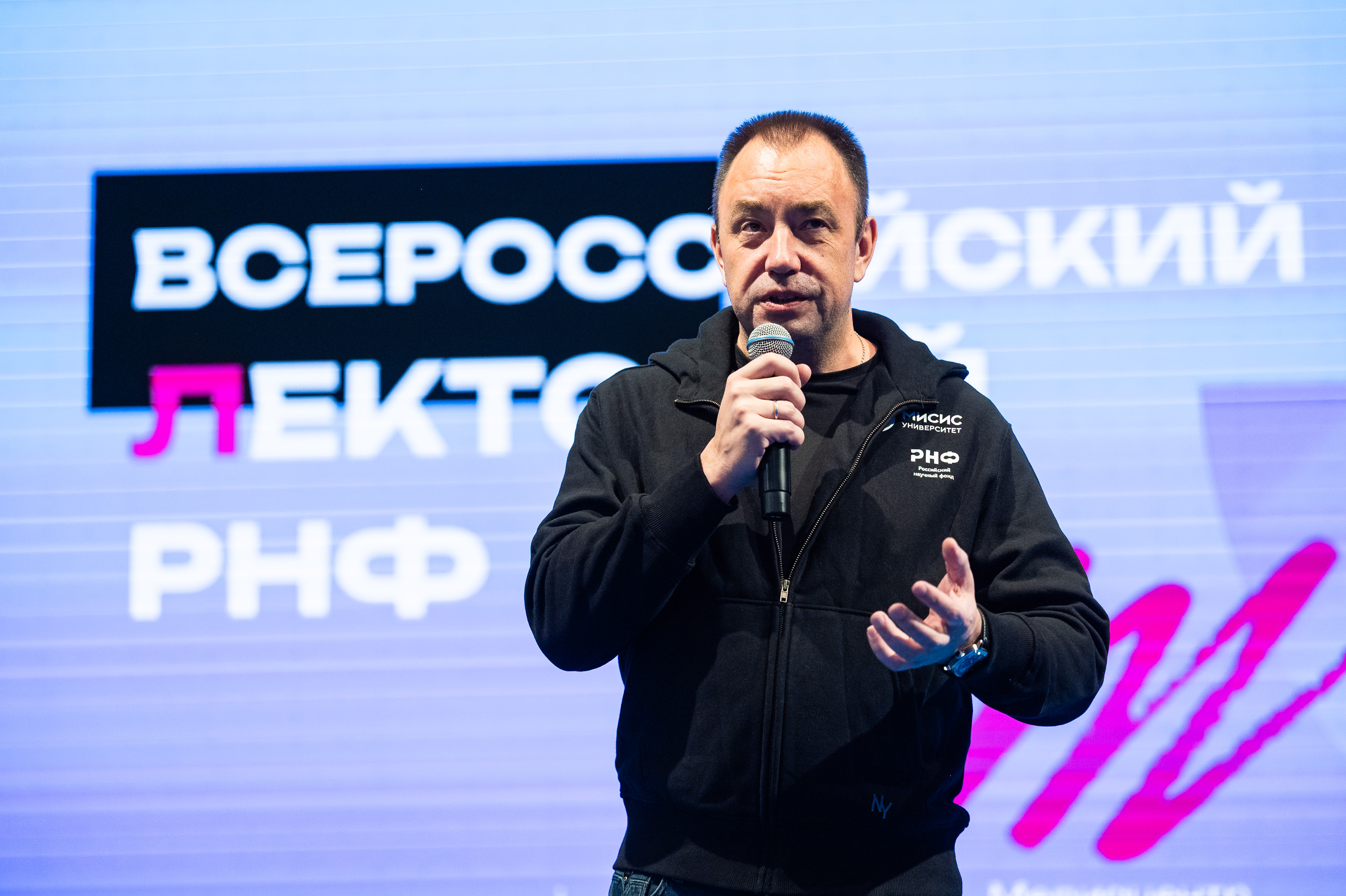 Андрей Блинов на Всероссийском лектории РНФ в Университете науки и технологий МИСИС в 2025 году. Источник: пресс-служба МИСИС