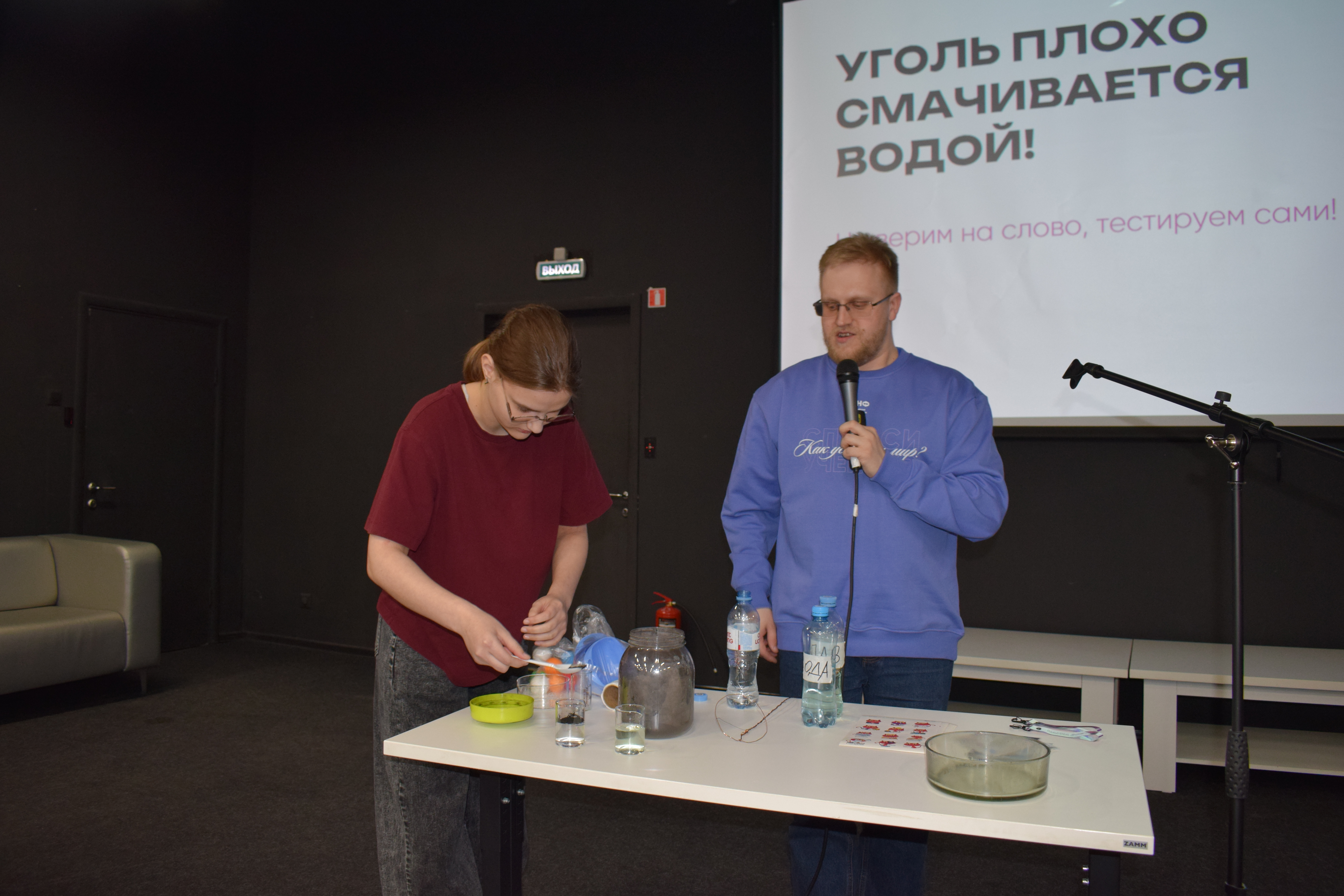 В Красноярске на площадке Красноярского научного центра СО РАН грантополучатели поделились секретом о том, как они укрощают пыль с помощью поверхностно-активных веществ — знаменитых ПАВ, и рассказали как превращают опилки, щепки, листья — в топливо, реагенты и умные материалы. В лекционной программе активно участвовали школьники.