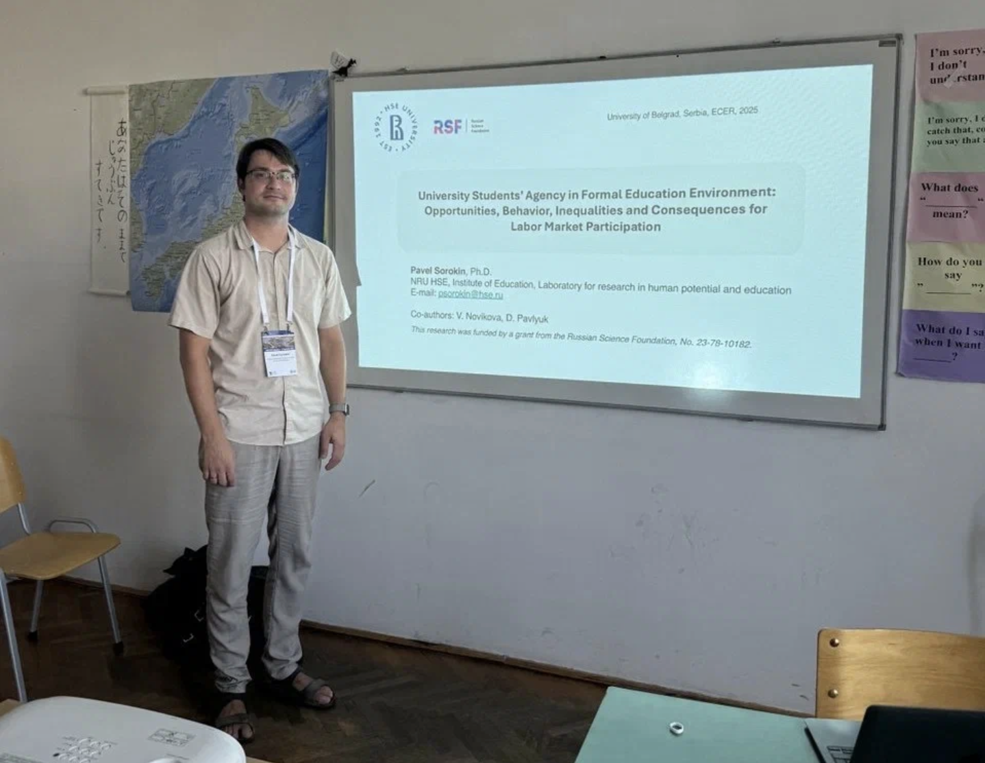 Сорокин Павел Сергеевич перед выступлением с докладом с результатами исследования. Источник: Павел Сорокин