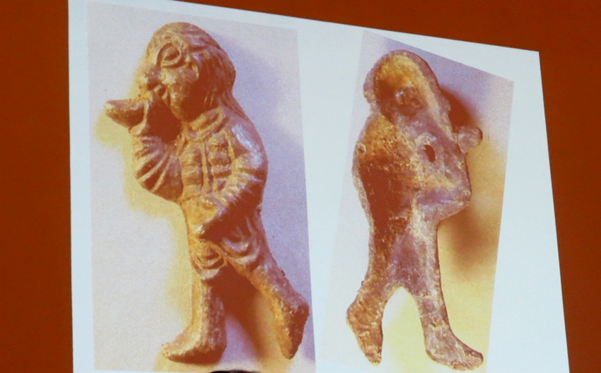 - В слоях XII века нам посчастливилось найти целый, закрытый энколпион (ковчежец), по всей видимости, византийского производства. По тем временам это очень дорогая вещь, её берегли. Дальнейшее исследование внутренних вложений покажет, что там находится. Интересная находка – западноевропейская накладка в виде человечка, он держит у рта то ли свисток, то ли предмет пищи – огурец или булочку, пока можно только предполагать. Одно из предположений – это всё-таки музыкальный инструмент.