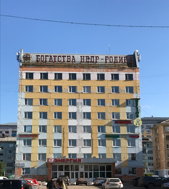Советское наследие здесь везде – надписи, дома, построенные для молодых комсомольцев на пике развития города и ставшие теперь ненужными в силу оттока населения. Есть даже магазины и кафе, полностью сохранившие советский антураж.
