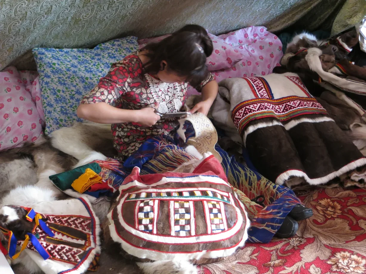 "Традиционная меховая одежда ненцев - не просто шуба-рубаха с капюшоном из цельного полотна мехом вовнутрь, а самый настоящий комплект-трансформер. Если снять с пояса ремень и связать им шубу под согнутыми коленями, она превращается в спальный мешок, в котором можно спать на снегу. А благодаря трубчатым волоскам оленьего меха шуба удерживает человека на плаву, если он упал в воду", - объяснила Светлана Кравчук, один из авторов исследования, сотрудник Уральского государственного архитектурно-художественного университета (УрГАХУ).