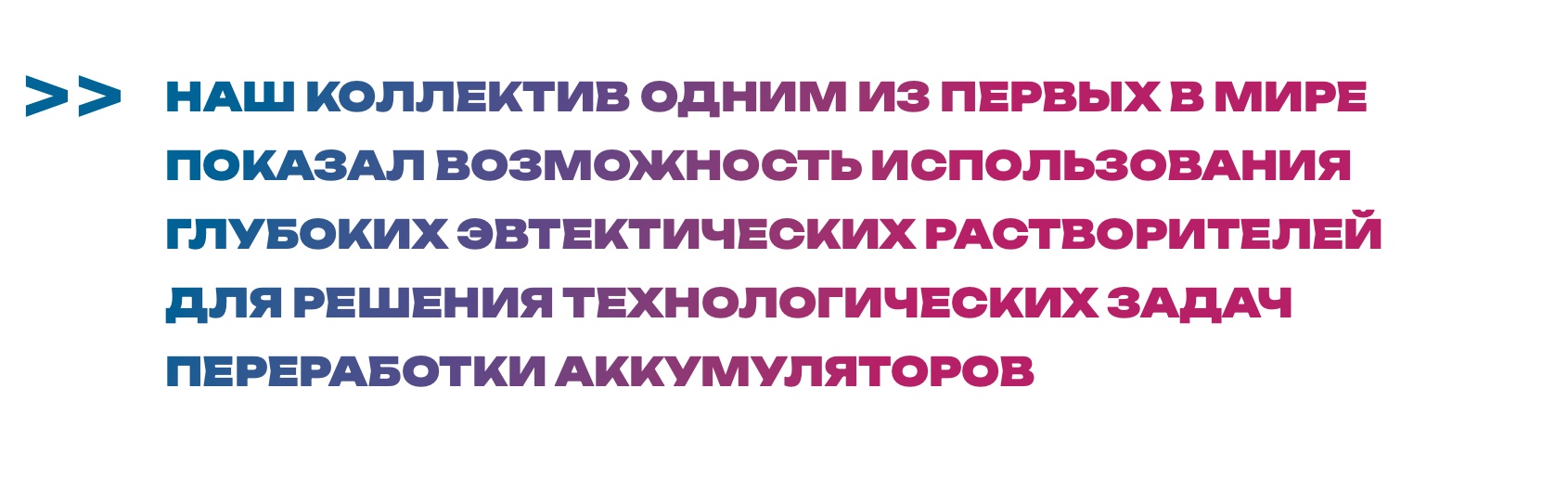 Тематика глубоких эвтектических растворителей активно развивается, а исследования в этой области входят в число самых цитируемых. В России работа в этом направлении пока только начинается. Наш коллектив одним из первых в мире показал возможность использования глубоких эвтектических растворителей для решения технологических задач переработки аккумуляторов, работая не только с модельными растворами, но и с реальными источниками тока.