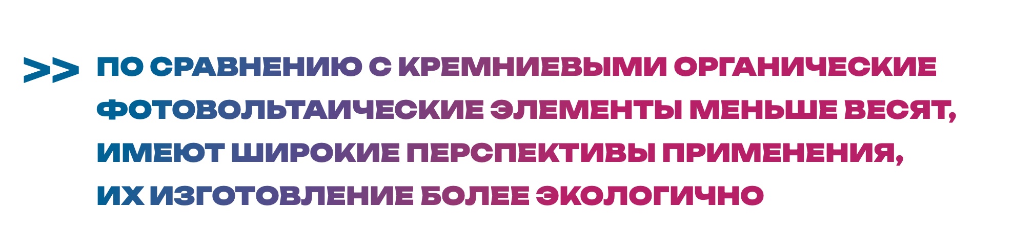 Кремниевые солнечные элементы имеют высокий КПД, но их производство энергозатратно и не всегда соответствует экологическим стандартам. Органические же фотовольтаические элементы меньше весят, имеют широкие перспективы применения, их изготовление более экологично