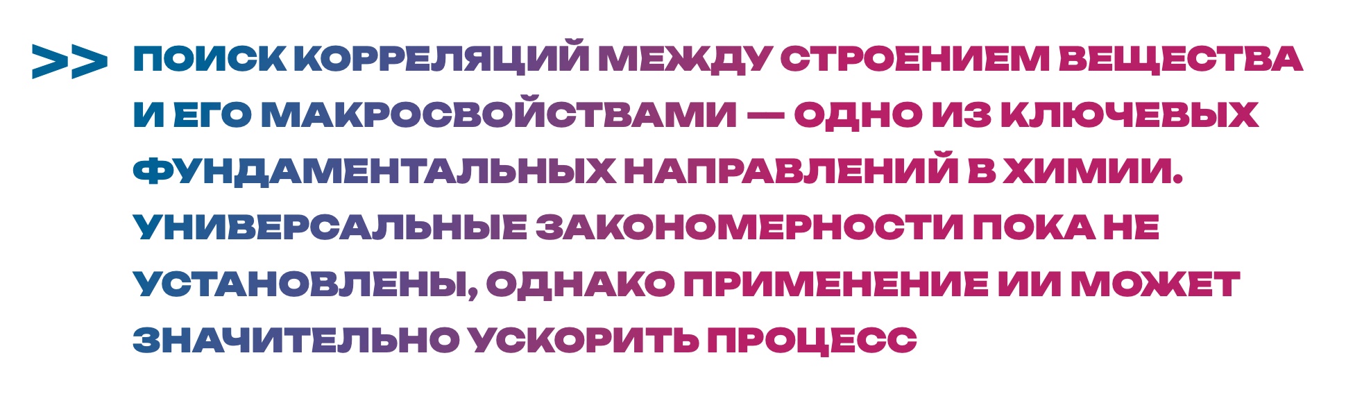 Это особенно важно в изучении ионных соединений — классе веществ, состоящих из катионов и анионов, структура которых влияет на свойства конечных материалов. Поиск корреляций между строением вещества и его макросвойствами — одно из ключевых фундаментальных направлений в химии. Универсальные закономерности пока не установлены, однако применение ИИ может значительно ускорить процесс.