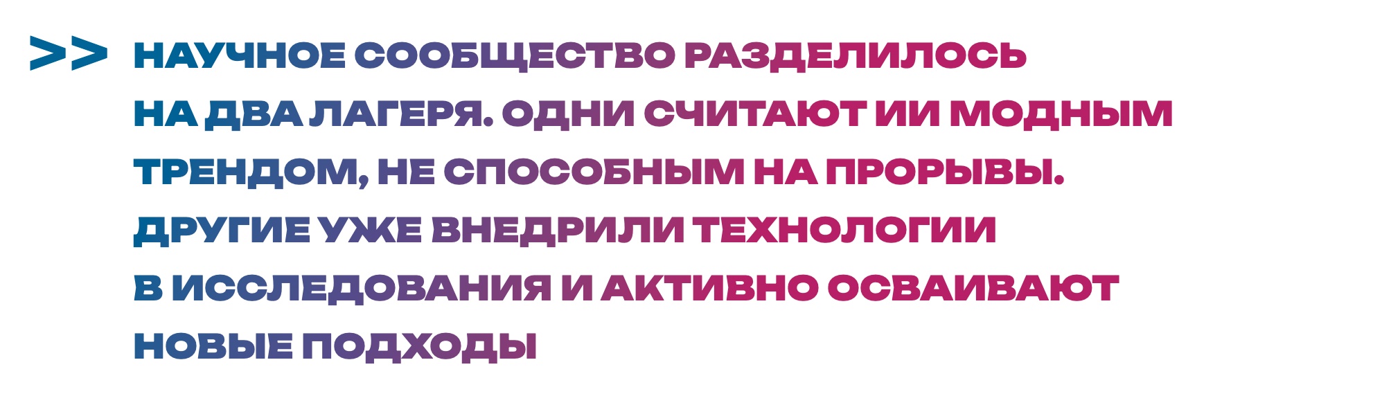 Научное сообщество разделилось на два лагеря. Одни считают ИИ модным трендом, не способным на прорывы, другие уже внедрили технологии в исследования и активно осваивают новые подходы