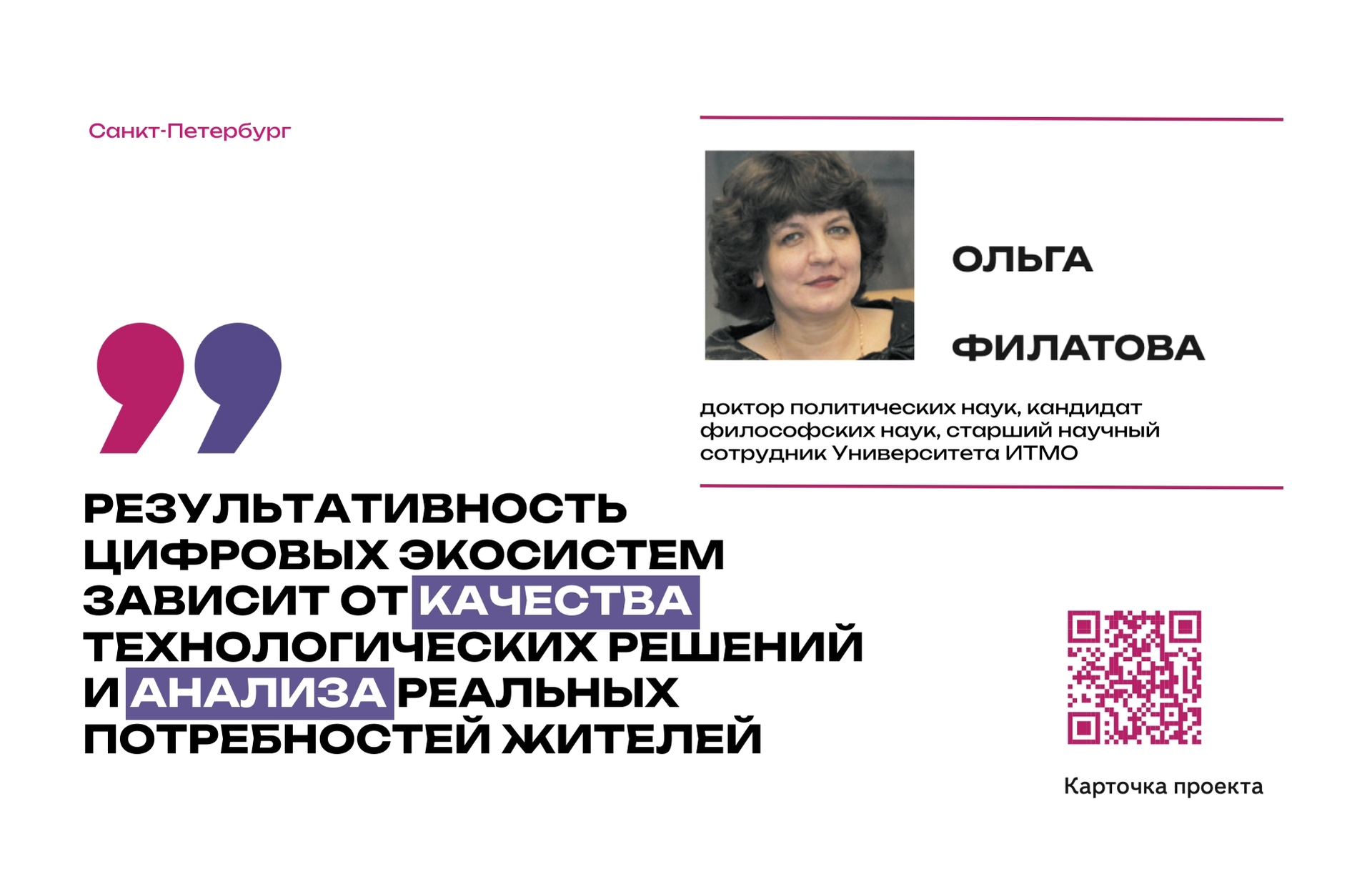 В рамках проекта нам удалось разработать модель городской цифровой экосистемы и визуализировать связи между ее элементами — органами власти, платформами, сервисами и пользователями. Эти наработки позволяют проводить локальные эмпирические исследования на уровне города или района и выявлять социальные эффекты цифровизации. Важным направлением стало также изучение цифровых потребностей горожан — тема пока мало исследованная, но крайне важная для планирования эффективных государственных решений.