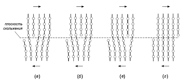 Дислокации представляют собой линейные дефекты решетки материала. Самый простой пример — это прямолинейная краевая дислокация. В кристаллическую решетку вклинивается дополнительная атомная полуплоскость (лежит по одну сторону от прямой), создавая под собой небольшую цилиндрическую полость. Если производить сдвиг материала, то произойдет движение этой атомной полуплоскости. В конце концов она выйдет на поверхность материала, что приведет к необратимой пластической деформации. Примесные атомы, которые добавляют в основной металл, влияют на скорость движения дислокаций. До недавнего времени в науке считалось, что они могут только замедлять перемещения дислокаций.