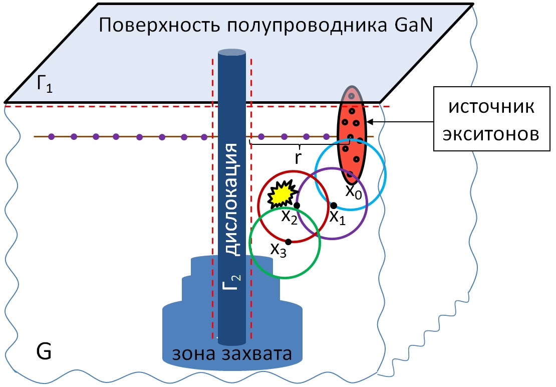 Моделирование процессов диффузии и захвата экситонов проникающими дислокациями. Источник: Карл Сабельфельд