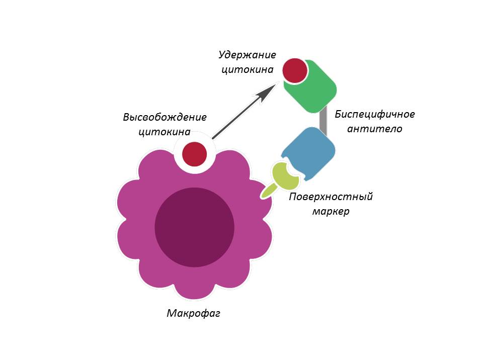 «У нас были созданы так называемые биспецифичные антитела. Это значит, что они умеют связывать два типа молекул. Одной “рукой” они цепляются за клетку и связывают поверхностный маркер, например на макрофаге, а второй “рукой” они захватывают тот самый цитокин, который эти клетки продуцируют. Соответственно, этот цитокин вместо того, чтобы системно попадать в кровоток и вызывать аутоиммунитет, просто сидит на поверхности макрофага и там удерживается и блокируется», – заключила Марина Друцкая.