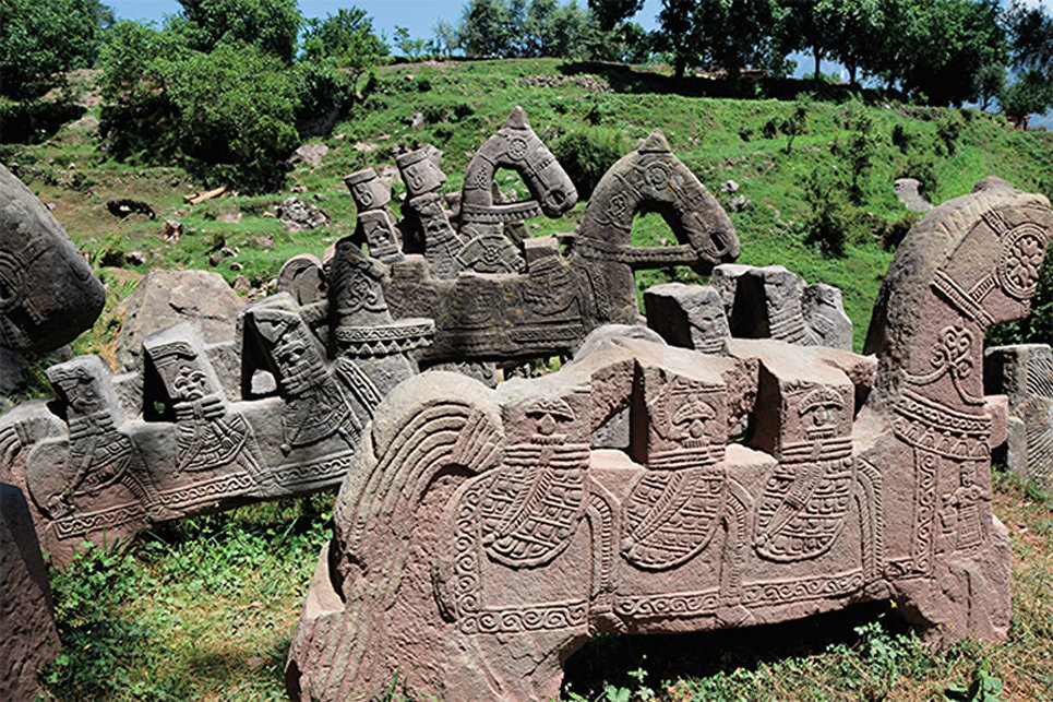 "Здесь было обнаружено два ритуальных комплекса, это далеко и высоко в горах, куда непросто доехать. Были найдены святилища около 200 каменных всадников, причем их специфика в том, что порой на лошади сидит не один человек, а два, три или четыре человека. То есть это воплощение каких-то мистерий и мифов, которые еще предстоит прочесть. Все эти скульптуры объемны, богато украшены резьбой", — рассказал Молодин.