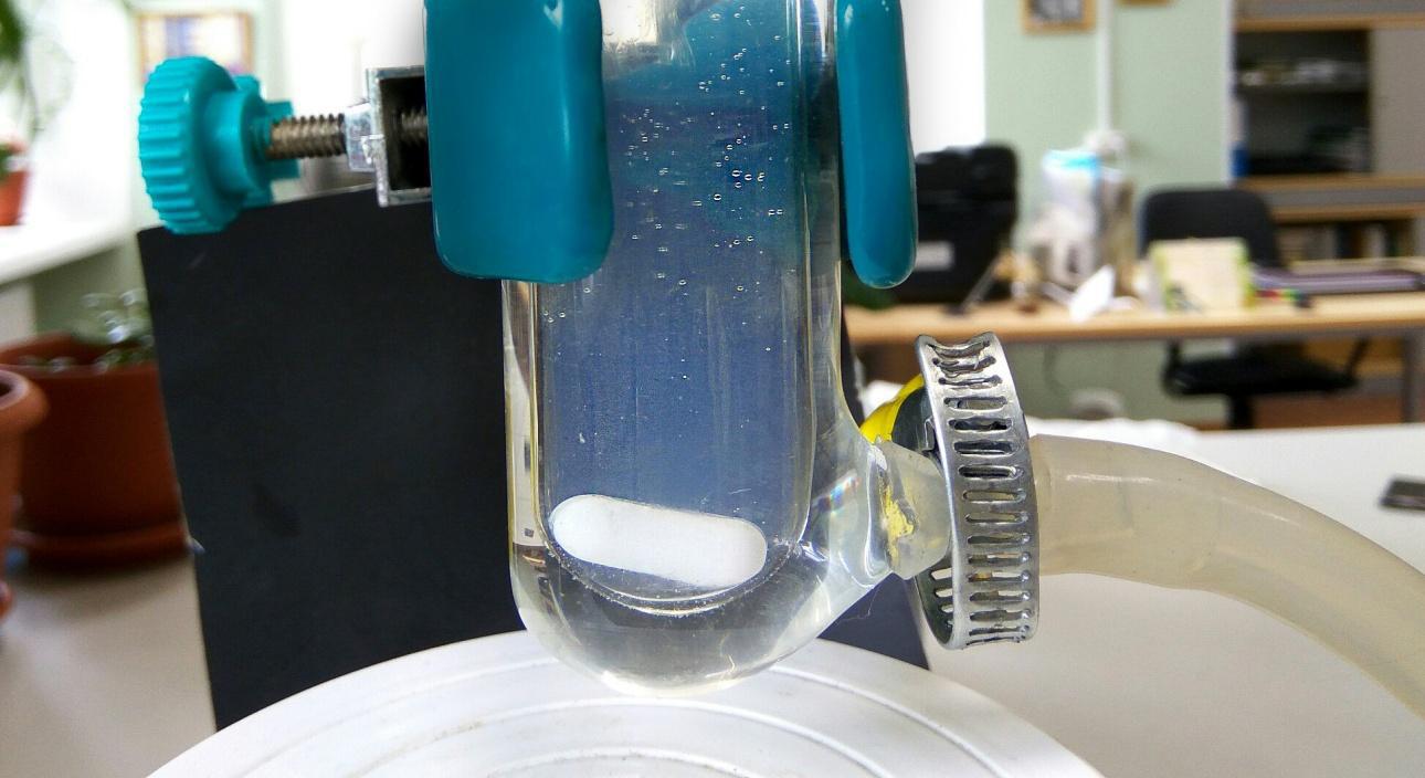 Ученые наблюдали за модельной системой при температуре в 303,15 К (30 °С) и нормальном атмосферном давлении. Заданные условия поддерживались в специально сконструированной термостатируемой ячейке. В отличие от стандартных приборов для поддержания температуры, эта установка была изготовлена из прозрачного стекла в стеклодувной мастерской Института химии СПбГУ. Сквозь стекло исследователи отслеживали, как смесь расслаивается. При этом образовывалась вторая жидкая фаза, содержащая те же компоненты, но в других концентрациях.