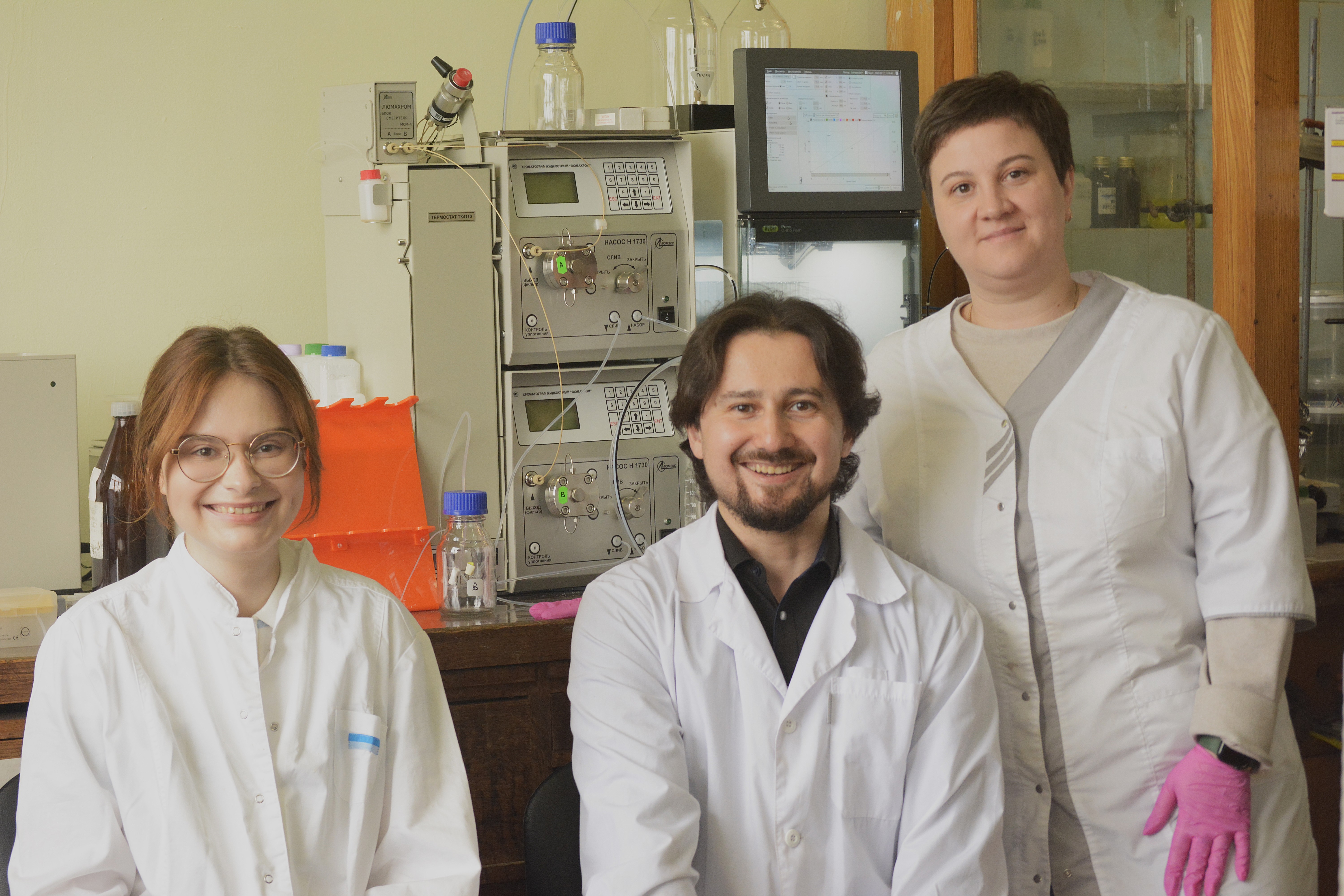 Коллектив проекта и сотрудники лаборатории медицинских и биологических технологий. Слева направо: Анна Аниськевич, Никита Цветов, Алена Койгерова. Источник: Вероника Данилина / пресс-служба ФИЦ КНЦ РАН