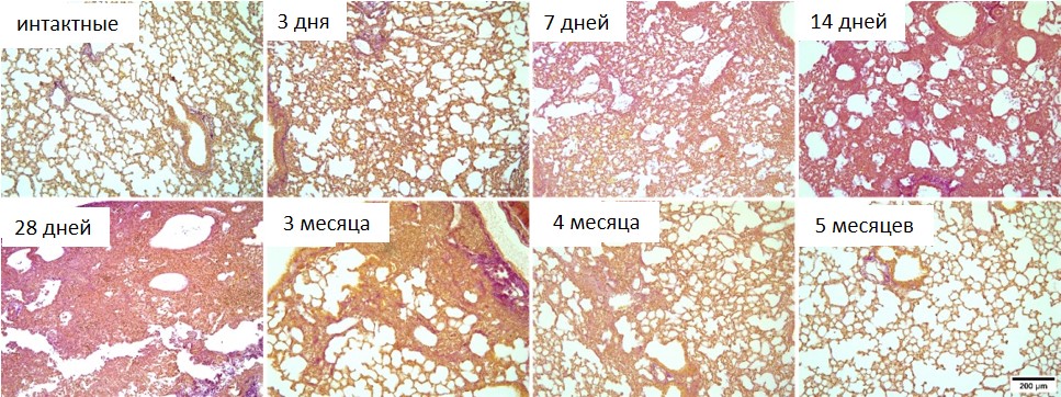 Сотрудники Московского государственного университета имени М.В. Ломоносова изучили, как развивается заболевание. Чтобы воспроизвести фиброз легких человека, ученые использовали мышей, которым вводили блеомицин — химическое вещество, которое провоцирует повреждения тканей. Экспериментальная модель выбрана из-за сходства с прогрессирующим фиброзом у человека. У мышей, однако, ткани могут восстанавливаться, что позволяет изучить не только развитие легочного фиброза, но и процесс разрушения рубцов.