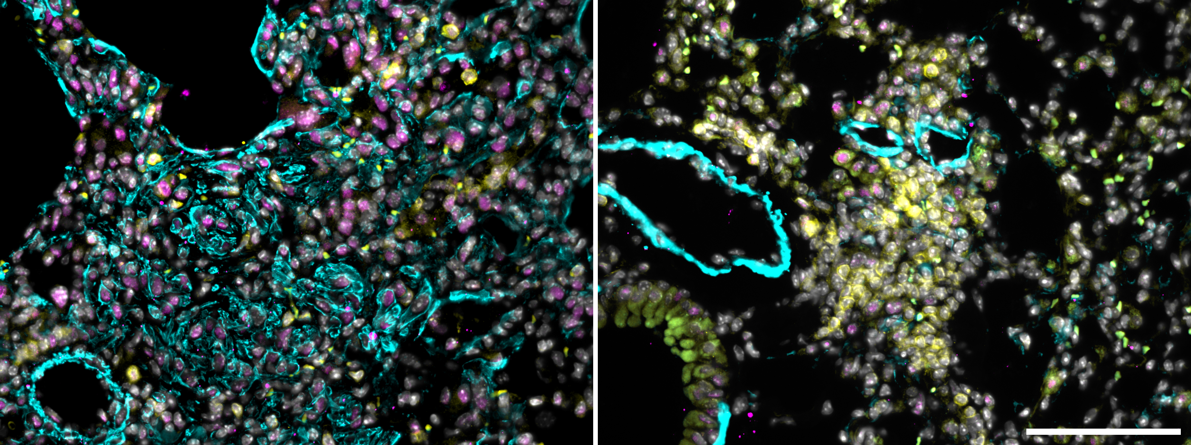 Поскольку прогрессирующий фиброз развивается поэтапно, исследователи сосредоточились на изучении клеточных механизмов на разных стадиях. Они наблюдали за процессами в легких мышей в ключевые моменты образования рубцов. Так, уже на ранних стадиях появляются активированные стромальные клетки — клетки соединительной ткани, экспрессирующие белок активации фибробластов альфа (FAPα). Эти клетки начинают активно делиться, а затем могут превращаться в миофибробласты, способствующие развитию фиброза. Вместе активированные клетки и миофибробласты активно вырабатывают белки рубцовой ткани, заменяя нормальную ткань органа.