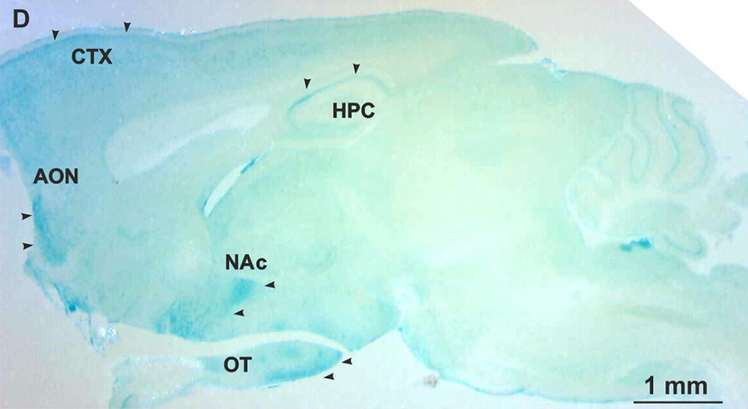 Исследователи Института трансляционной биомедицины обратили внимание на другой рецептор следовых аминов — TAAR5. Ранее считалось, что все остальные рецепторы к трейс-аминам, за исключением TAAR1, являются исключительно обонятельными и участвуют только в восприятии инстинктивных запахов (например, запаха гнили, смерти, хищника или феромонов), поэтому вряд ли могут пригодиться в поисках лекарств от заболеваний мозга. Однако ученые СПбГУ были уверены в другом: чтобы доказать важную роль TAAR5 в психоэмоциональном состоянии, они провели серию экспериментов с нокаутными лабораторными мышами. У этих животных «нокаутирован» или «выключен» ген, кодирующий белок TAAR5. Вместо него в геном вставлен маркер, который позволяет увидеть, в каких зонах мозга данный белок мог быть задействован.