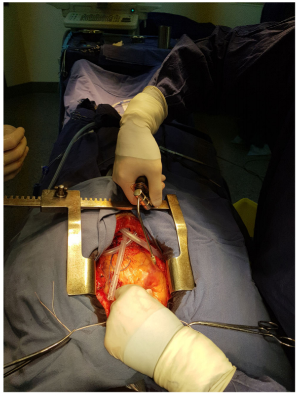 Фото: операция на открытом сердце: этап распыления гидрогеля с амиодароном. Источник: Bockeria et al. / Journal of Cardiovascular Translational Research, 2019