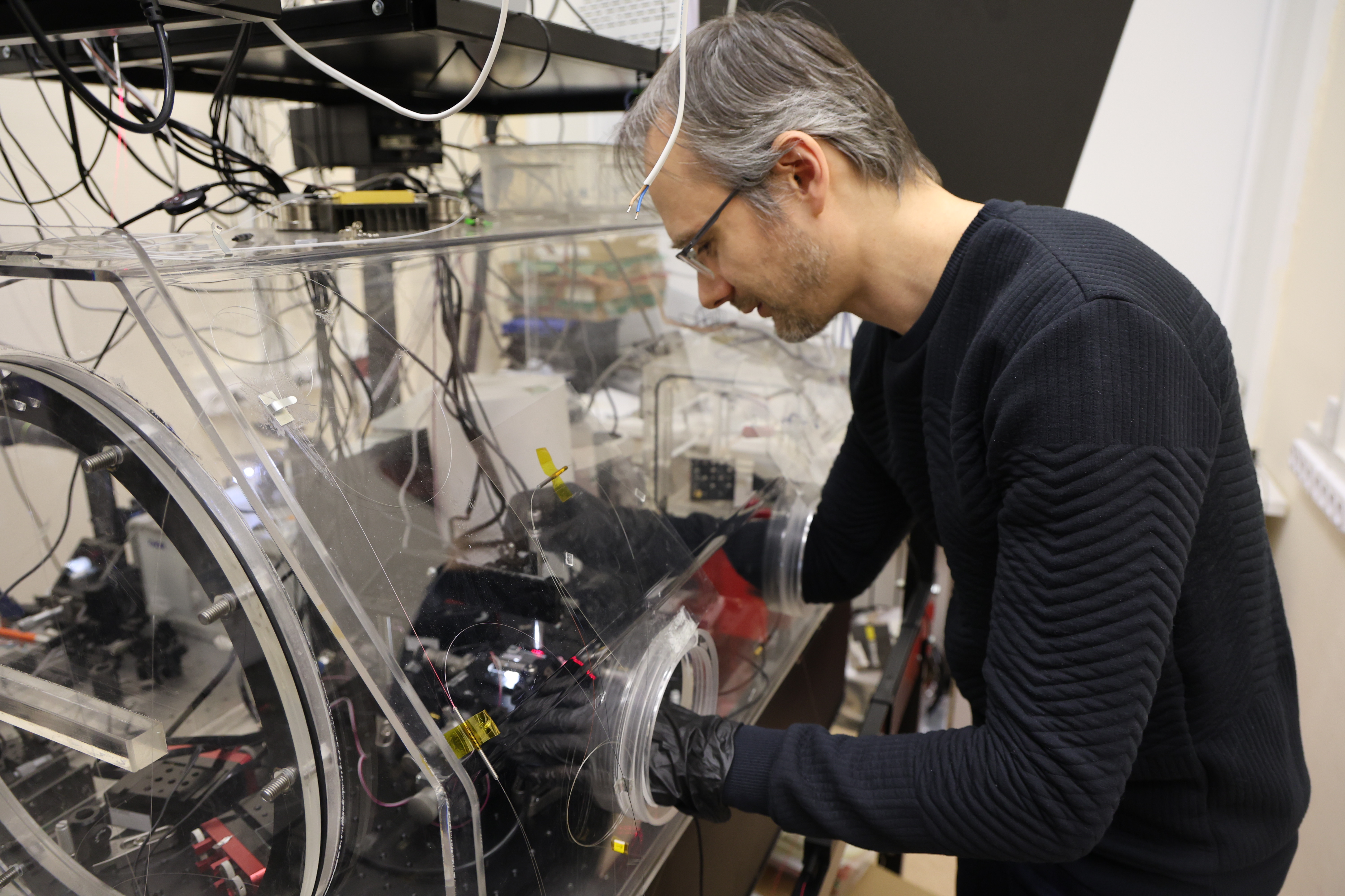 Один из авторов исследования Алексей Андрианов за работой в лаборатории. Источник: пресс-служба ИПФ РАН