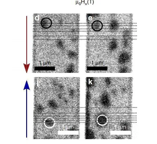 Однако большой вклад вносит микроструктура материала, по которому идет движение. Даже небольшие царапинки и несовершенства приводят к отклонению магнитных вихрей. Раннее считалось, что скирмион отклоняется от направления управляющего им электрического тока на угол, зависящий от размера завихрения. Международный коллектив исследователей обнаружил, что для скирмионов диаметром от 35 до 825 миллионных долей миллиметра угол остается неизменным и равным 9°. То есть направление движения скирмионов с размерами в изученном диапазоне будет одинаковым. Это открывает новые перспективы для создания управляемых устройств «беговой» памяти с возможностью пространственного разделения скирмионов по размеру, кодирования в их размерах дополнительной информации и возможностью ускоренного обращения к данным, записанным в скирмионах нужного типа.