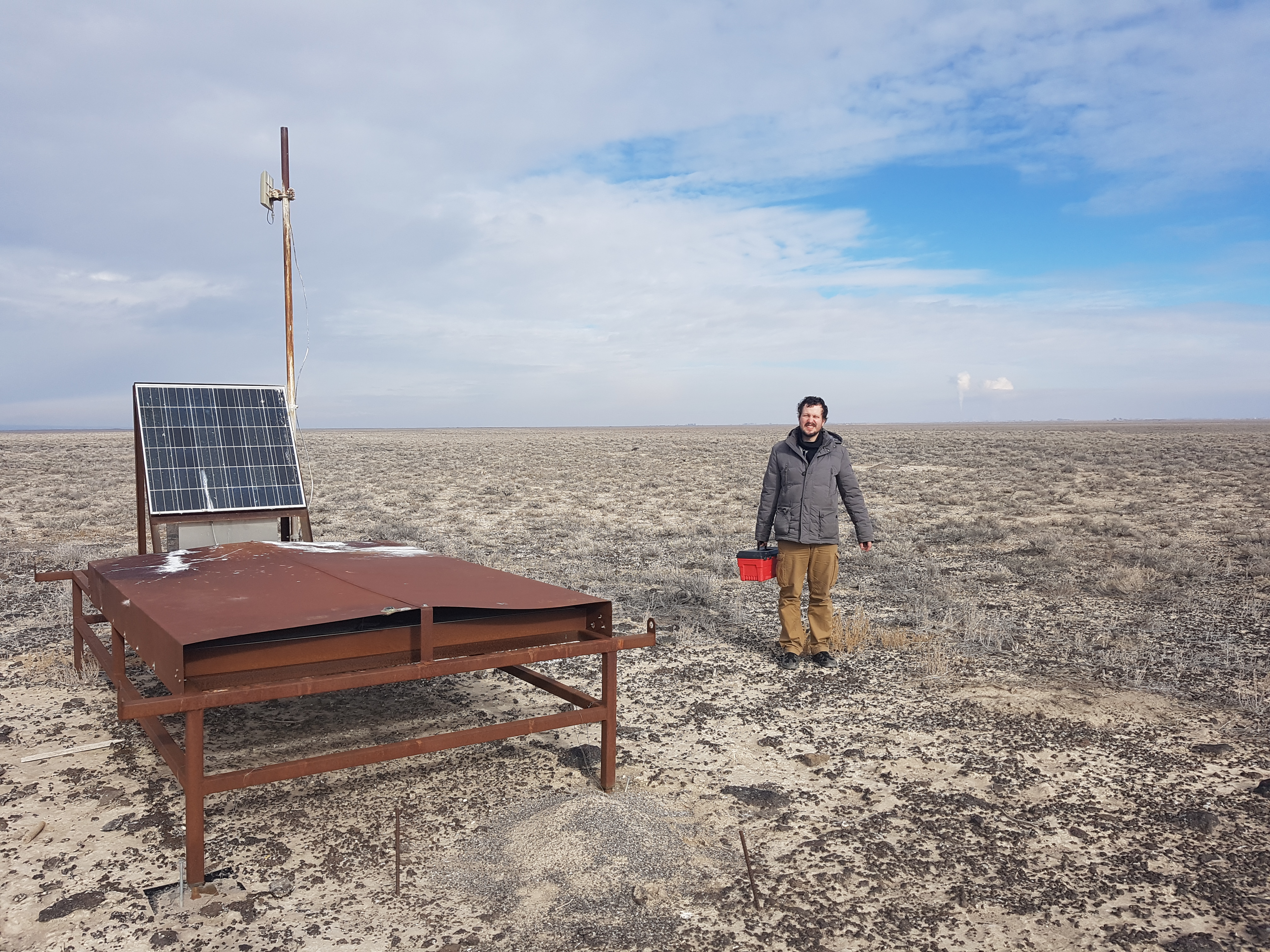 Фото: Григорий Рубцов на дежурстве по обслуживанию детекторов наземной решетки Telescope Array (7 декабря 2018 г.). Источник: Григорий Рубцов