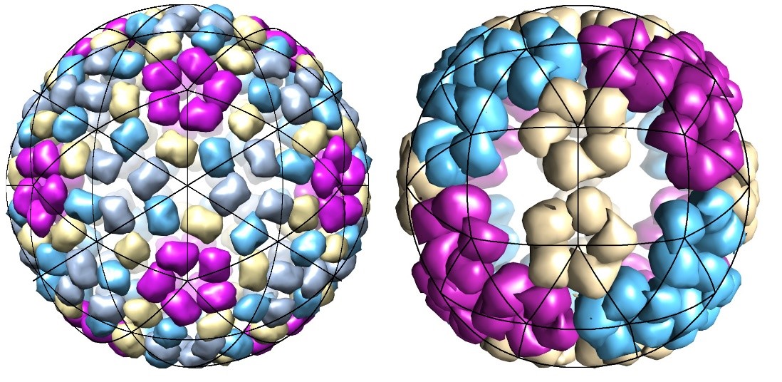 Большинство вирусных оболочек представляют собой сферические икосаэдры, поверхность которых можно геометрически разбить на множество маленьких примерно одинаковых треугольных ячеек, каждая из которых состоит из трех белков. В последние годы были также обнаружены аномальные сферические упаковки, образуемые чередующимися треугольниками и квадратами. Более того, несколько подобных оболочек ученые синтезировали искусственно. Однако до сих пор не существовало простой геометрической модели, которая бы ясно описывала принципы устройства квадратно-треугольных сферических структур и помогла бы предсказывать структуру новых подобных комплексов, потенциально способных доставлять в ткани различные лекарства.