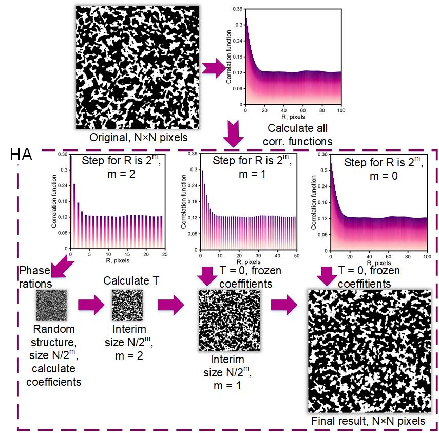 Картинка: схема алгоритма нового метода иерархической реконструкции HA по корреляционным функциям. Источник: Кирилл Герке