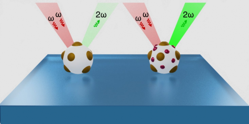«Мы прибегли к хитрости и модифицировали поверхность частиц катионным полиэлектролитом PAH (полиаллиламина гидрохлорид), который позволил не только скомпенсировать отрицательный заряд поверхности кремния, но и придать полученным частицам положительный заряд», — рассказала она.Обе наноструктуры рассматривались как в сжатом, так и в увеличенном состоянии. Фазовый переход, который меняет состояние наноструктуры, также может регулировать ее оптические свойства, например ― генерацию второй оптической гармоники. Это процесс, при котором наноструктуру облучают светом на одной длине волны, а она излучает свет на вдвое меньшей длине волны. Другими словами, если направить на наноструктуру инфракрасный свет, она будет излучать зеленый свет за счет своих нелинейных свойств.