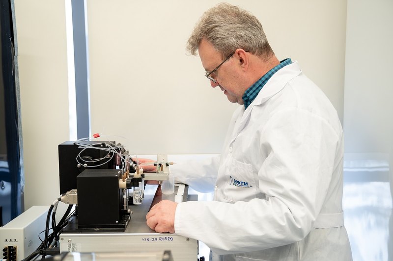 Фото: Владимир Черкасов, ведущий научный сотрудник лаборатории нанобиотехнологий МФТИ, делает тестовые полоски для экспресс-ДНК-диагностики. Источник: Евгений Пелевин, пресс-служба МФТИ