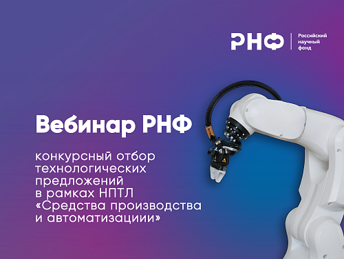 РНФ приглашает на вебинар, посвященный конкурсному отбору технологических предложений в рамках национального проекта технологического лидерства «Средства производства и автоматизации»
