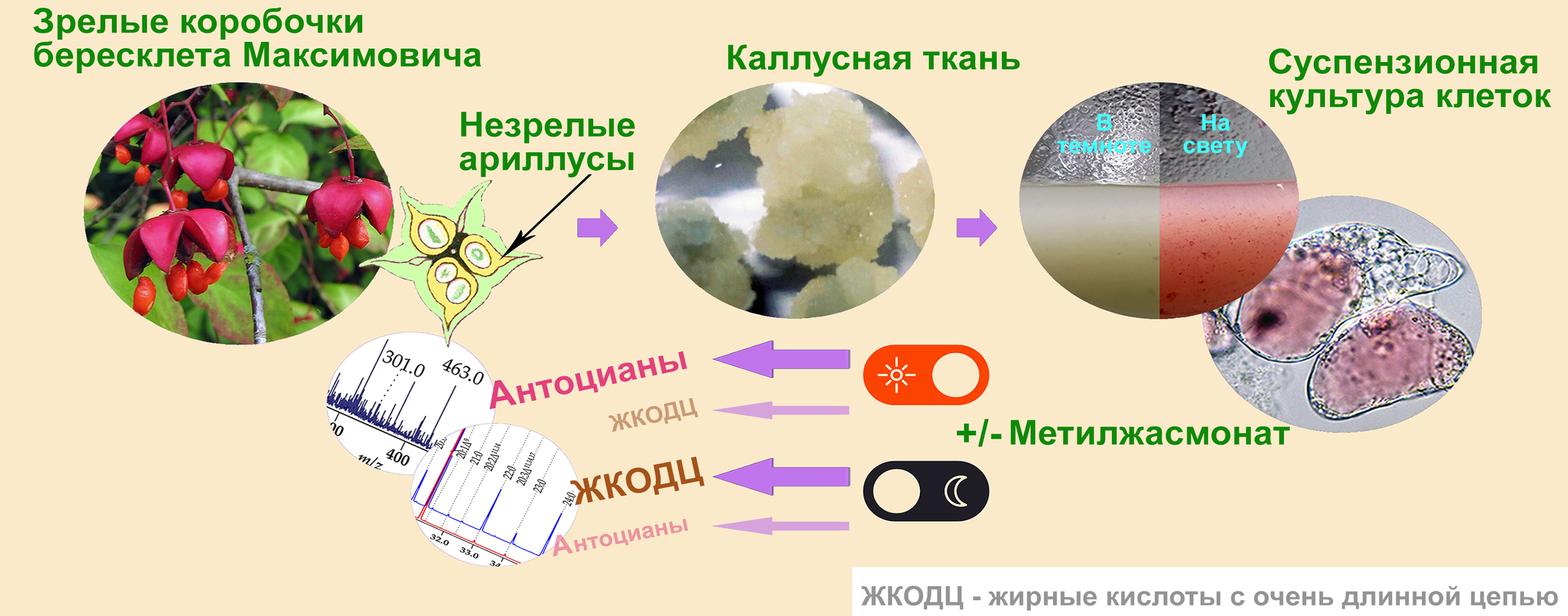 Исследователи из Института физиологии растений имени К.А. Тимирязева РАН (Москва) и Российского университета дружбы народов имени Патриса Лумумбы (Москва) изучили некоторые соединения, синтезируемые культурой клеток бересклета Максимовича (Euonymus maximowiczianus), плоды которого накапливают большое количество липидов (жиров). В отличие от целых растений, культуры клеток имеют ряд преимуществ: они быстро растут и размножаются, при этом, как правило, синтезируют те же самые вещества, что и исходные растения. В качестве источника клеточной культуры ученые использовали нетипичные для культивирования органы растений — присемянники. Это ткани, окружающие семена, в которых растения запасают масла, жирные кислоты и каротиноиды — красно-оранжевые пигменты.