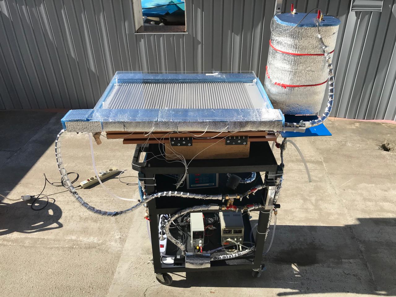 Также исследователи разработали экспериментальную установку, позволяющую изучить нагрев и испарение с поверхности жидкостей. Она состояла из источника излучения, контейнера для хранения жидкости, а также системы измерения температуры и массы испаряющейся жидкости. С помощью такого оборудования авторы сравнили испарение графеновой наножидкости (дистиллированной воды с графеновыми нанохлопьями) и обычной дистиллированной воды, которая служила контролем. Ученые измерили температуру и массу испаряющейся жидкости под действием синего, зеленого, красного, ближнего и дальнего инфракрасного света.