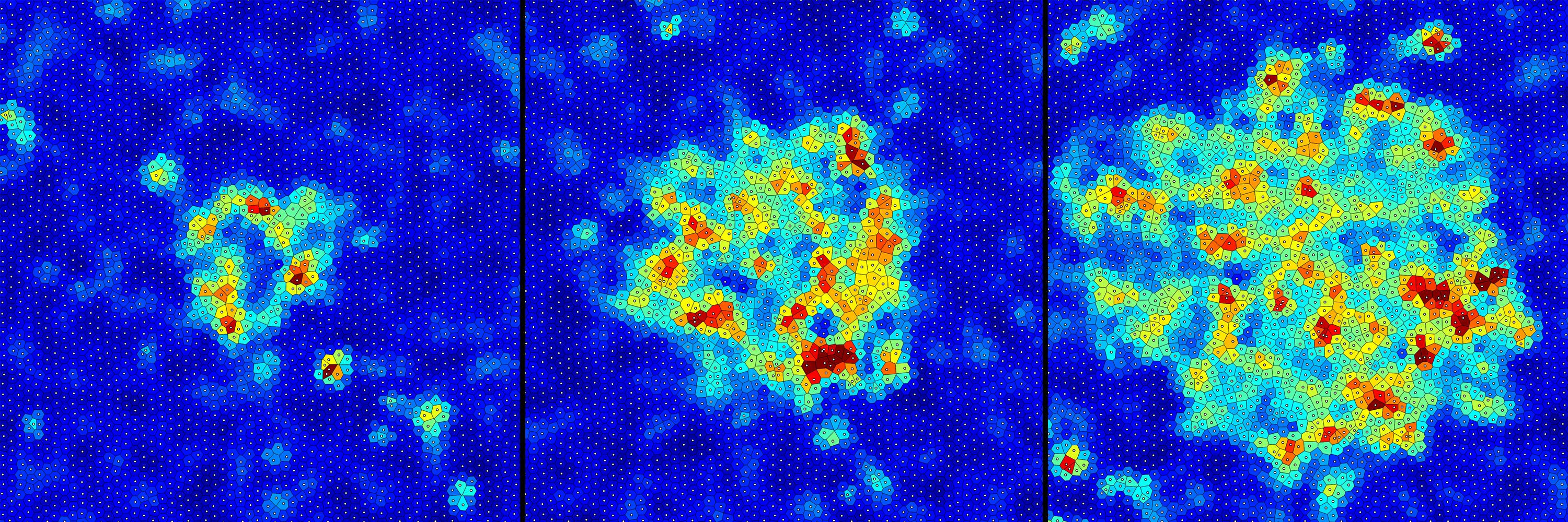 Группа физиков из Московского государственного технического университета имени Н. Э. Баумана (Москва) предложила такой параметр, а совместно с английскими и китайскими коллегами провела исследование. Авторы воспользовались разбиением системы на ячейки Вороного: каждой частице ставится в соответствие многогранник, каждая точка которого ближе к выбранной частице, чем к любой другой. В результате система становится похожа на гранат, состоящий из зерен-ячеек Вороного. В кристалле «зерна» практически одинаковы и упорядочены в пространстве, а в жидкости намного сильнее отличаются друг от друга и расположены хаотично. Главное, что такое разбиение позволяет однозначным образом определить локальных соседей каждой частицы как в кристалле, так и в жидкости. Далее авторы предложили анализировать не отклонения частиц от положений равновесия, а отклонения от «средней» конфигурации соседей, полученной при помощи ячеек Вороного. Для этого параметра порядка авторы составили уравнения, которые описывают его эволюцию во времени и пространстве.