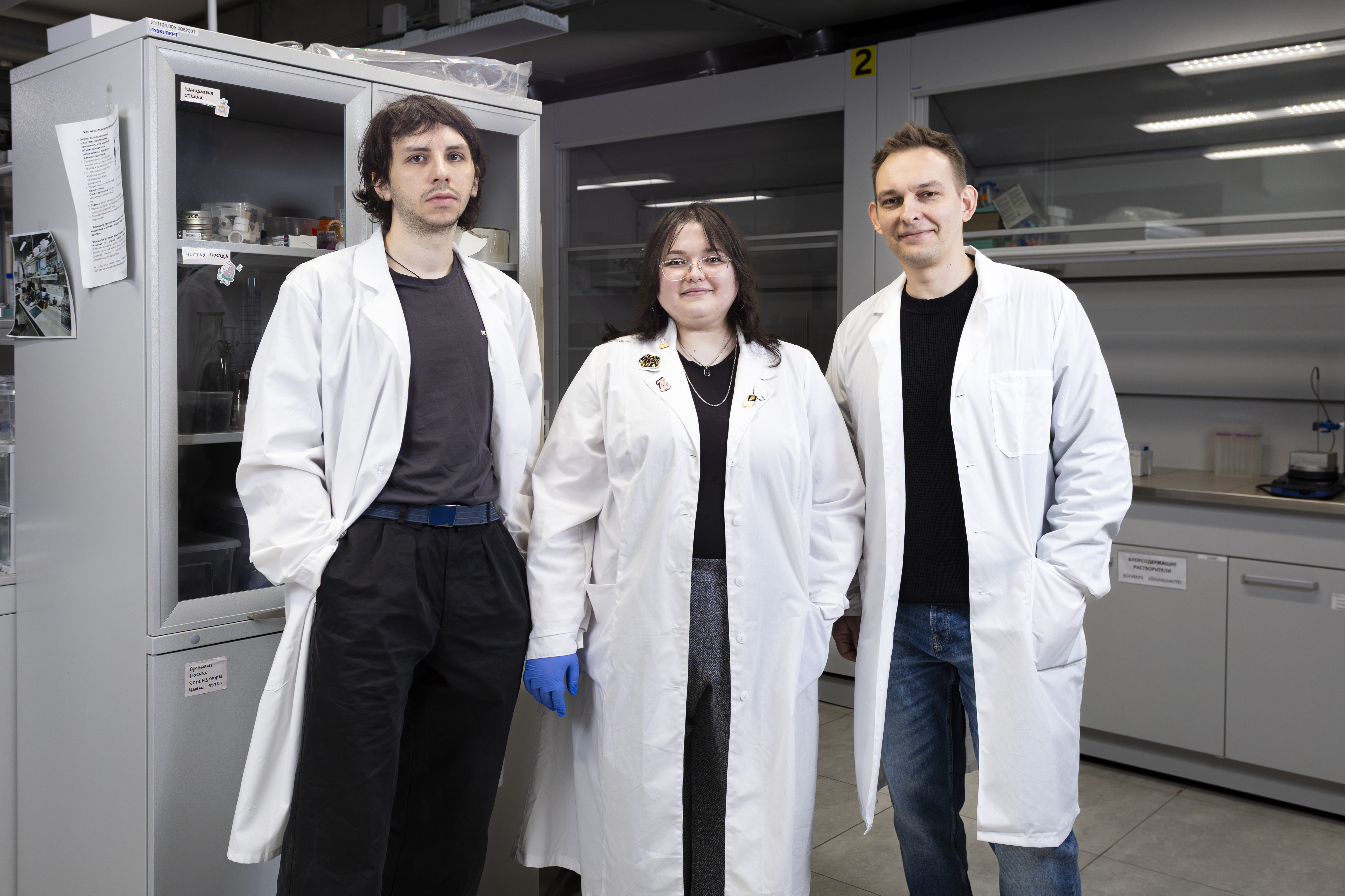Соавторы работы из ИТМО. Слева направо: Константин Арабули, Лидия Михайлова, Михаил Зюзин. Источник: Данила Поперёков / Университет ИТМО, пресс-служба физического факультета